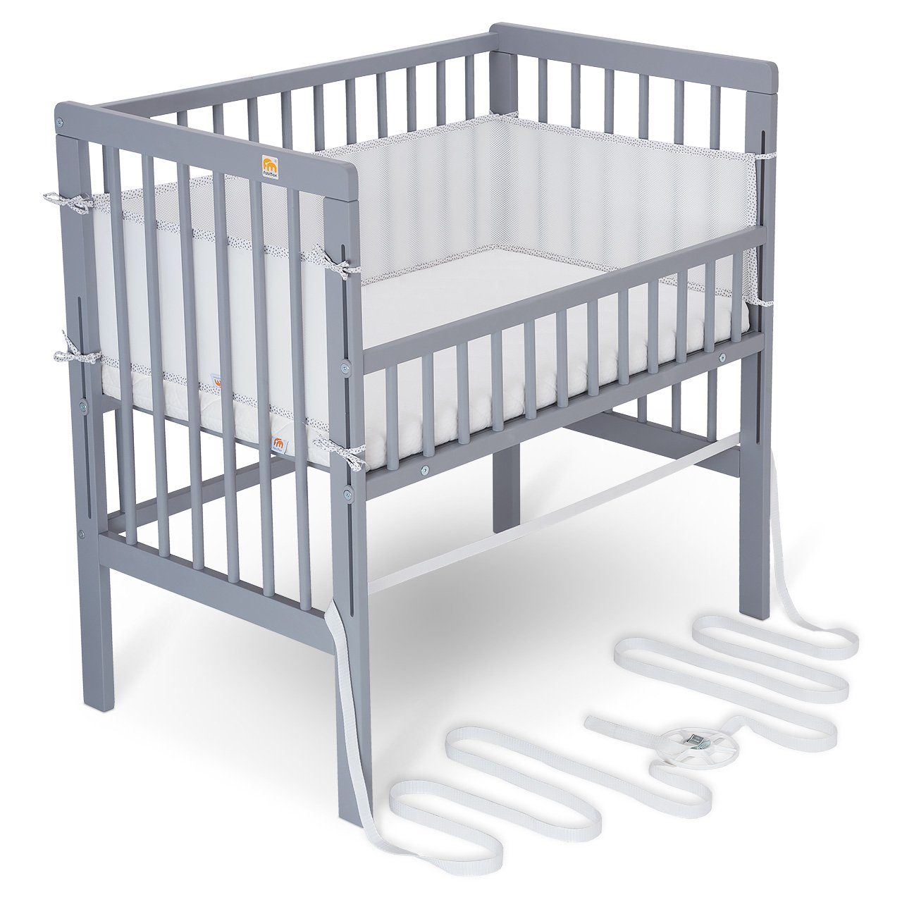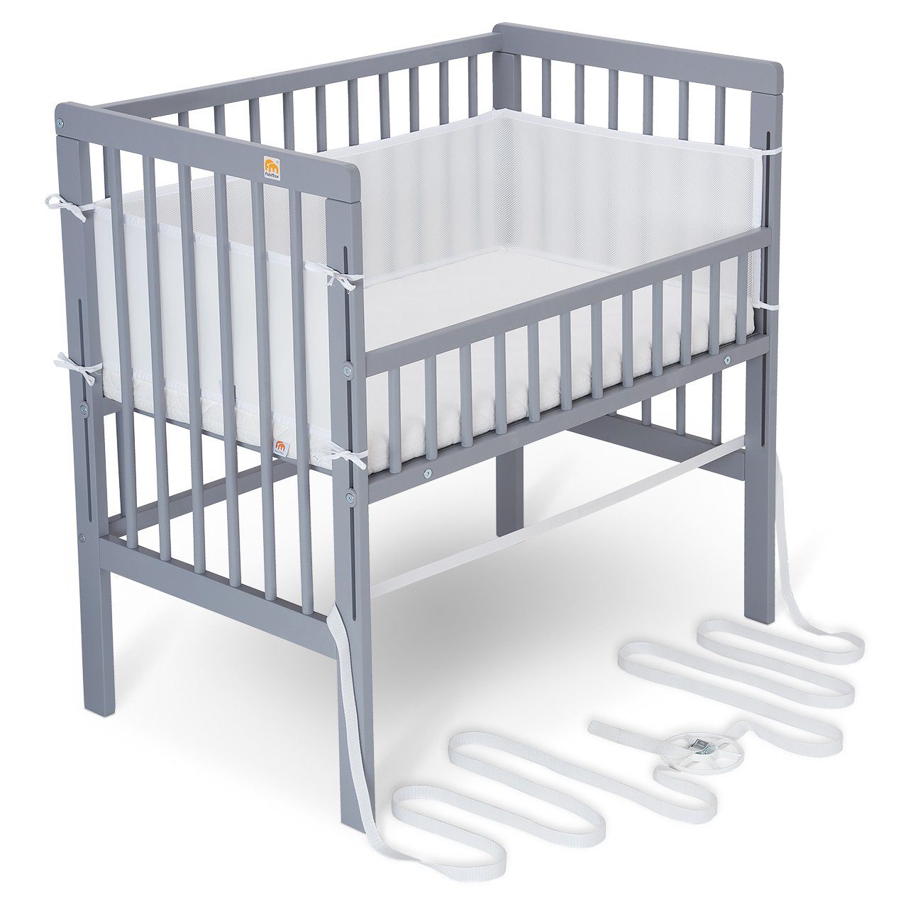 In puncto Qualität setzt FabiMax seit über 20 Jahren Maßstäbe. Das Beistellbett aus stabilem und langlebigem Buchenholz überzeugt durch seine Sicherheit sowie den Lamellen-Lattenrost, der für eine ideale Luftzirkulation sorgt. Für den Schlafkomfort Ihres Babys bieten wir zudem die Auswahl zwischen drei hochwertigen Matratzen::
