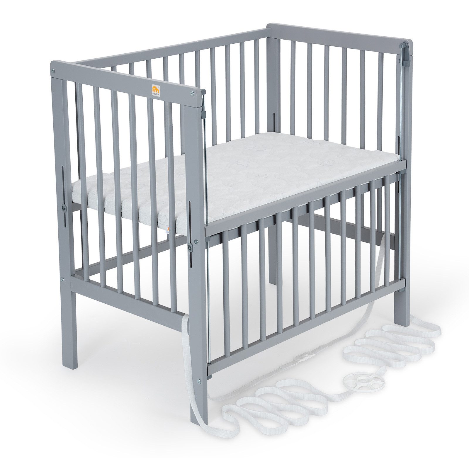 Das Beistellbett ist aus stabilem und langlebigem Buchenholz gefertigt und gewährleistet durch seinen Lattenrost eine ideale Luftzirkulation. Wir verwenden ausschließlich Lacke die gemäß DIN-EN 71-3 (Sicherheit von Spielzeug) zertifiziert sind. Diese Norm bestimmt, welche Stoffe in Farben und Lacken sein dürfen, damit sie sicher für Kinder sind. Zur Auswahl stehen drei hochwertige Matratzen: