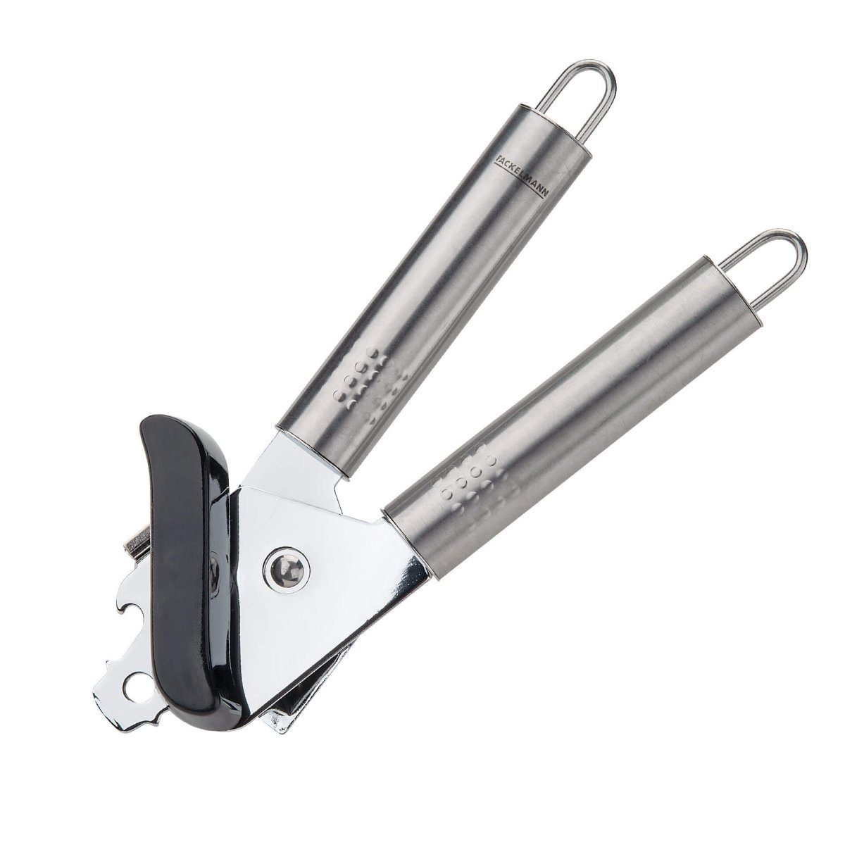 Der vielfältige Dosenöffner mit gehärtetem Schneidrad und komfortablem Drehgriff ist der ideale Helfer zum mühelosen Öffnen von Dosen und Konserven aller Art. Die praktische Öse am Griff ermöglicht das platzsparende Aufhängen des Öffners an einer Hängeleiste. Dieser kann nach Gebrauch einfach per Handwäsche gereinigt werden.