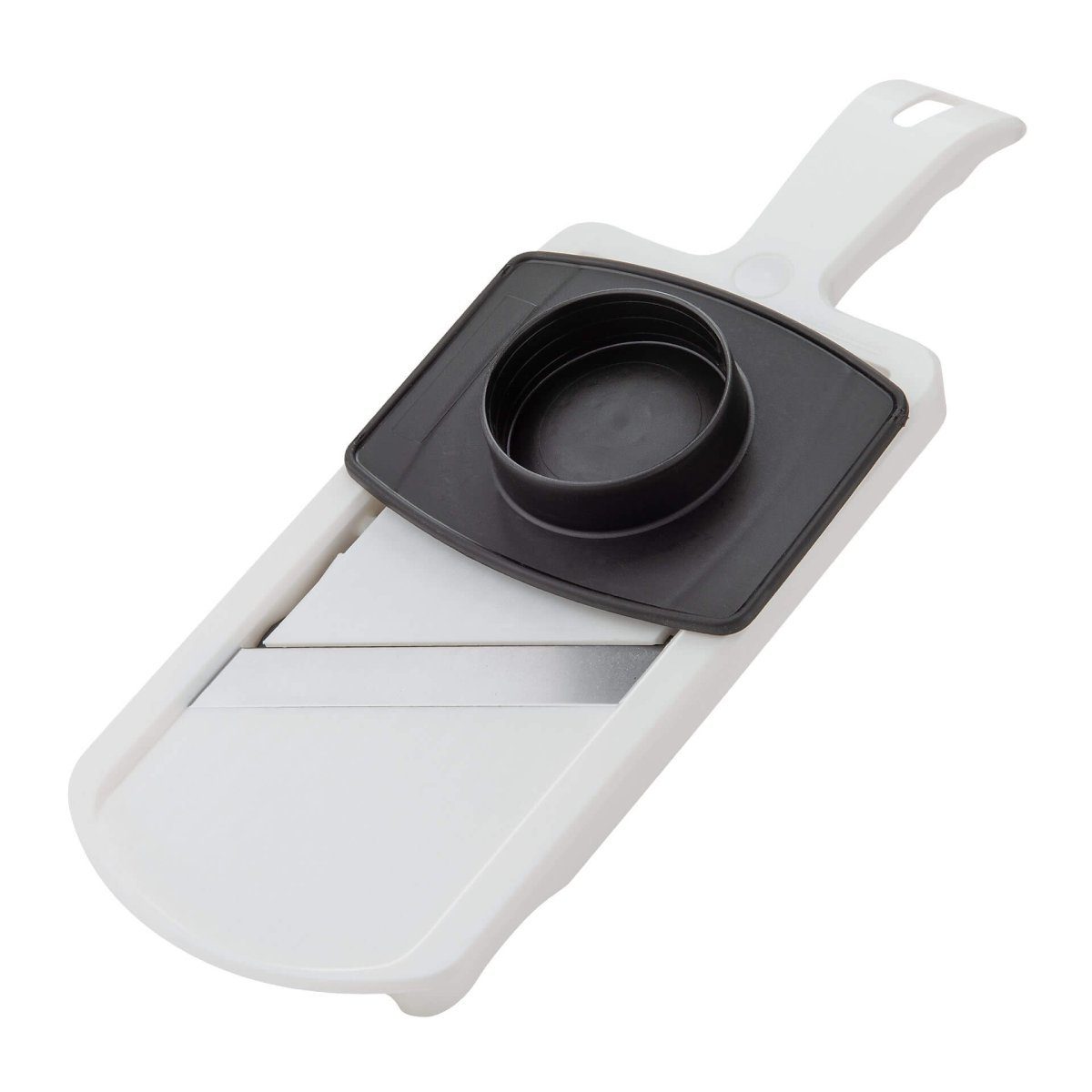 Mit dem hochwertigen Dick- und Dünnschneider verwandeln Sie Gemüse und Obst im Handumdrehen in feine Scheiben für die Впередverarbeitung in Salaten, Aufläufen, Joghurts oder Suppen. Das extra scharfe Messer zerschneidet Zucchini, Karotten, Kartoffeln, Kraut und vieles mehr mit geringer Kraftanstrengung. Der praktische Griff sorgt für einen optimalen Halt während des Hobelns, dank der höhenverstellbaren Klinge entstehen dabei je nach Einstellung hauchzarte oder dickere Scheiben. Ihre Finger sind durch den mitgelieferten schwarzen Restehalter optimal geschützt, gleichzeitig werden so auch kleinste Gemüsereste verwertet. Der Küchenhelfer kann nach dem Gebrauch ganz einfach mit der Hand gereinigt werden.