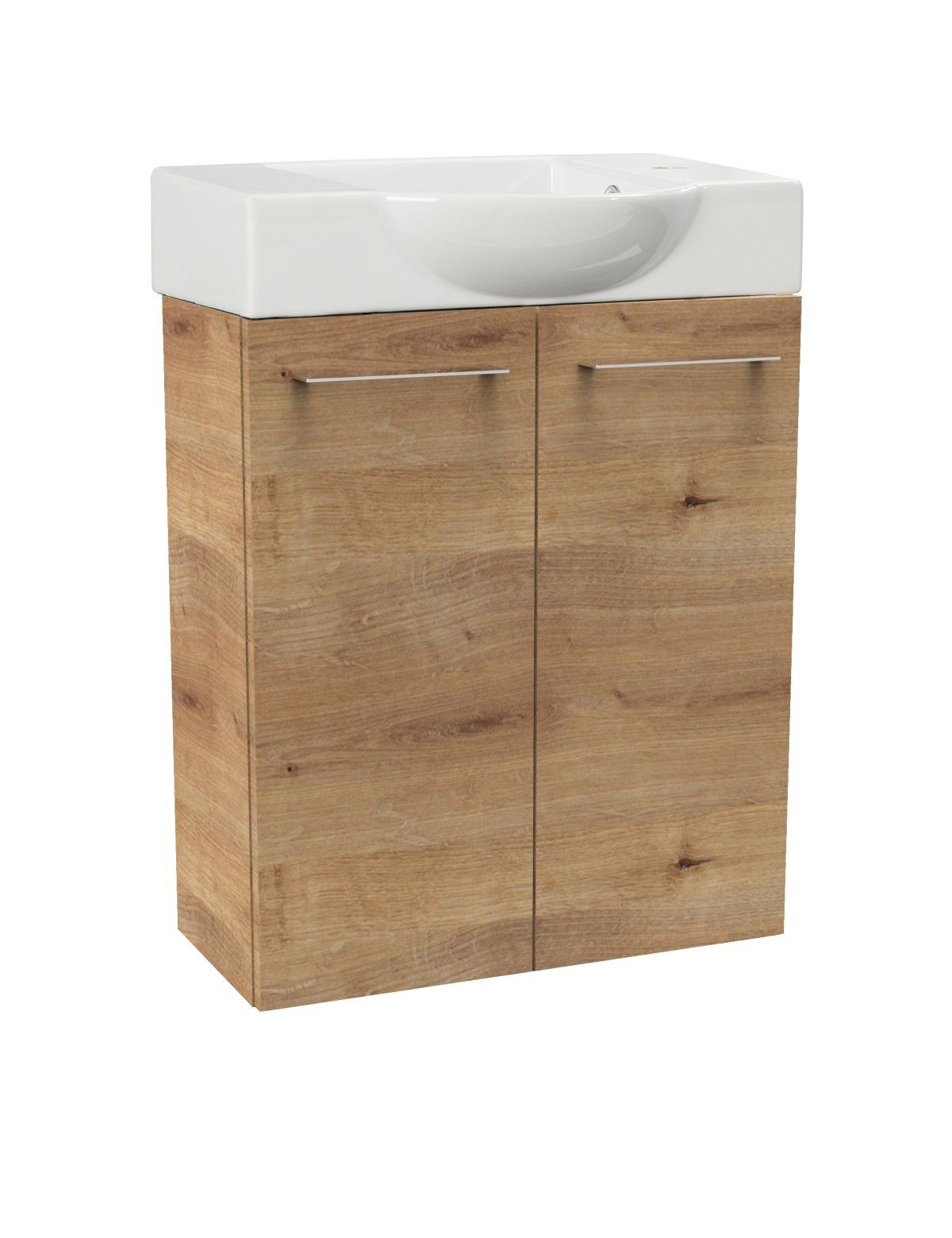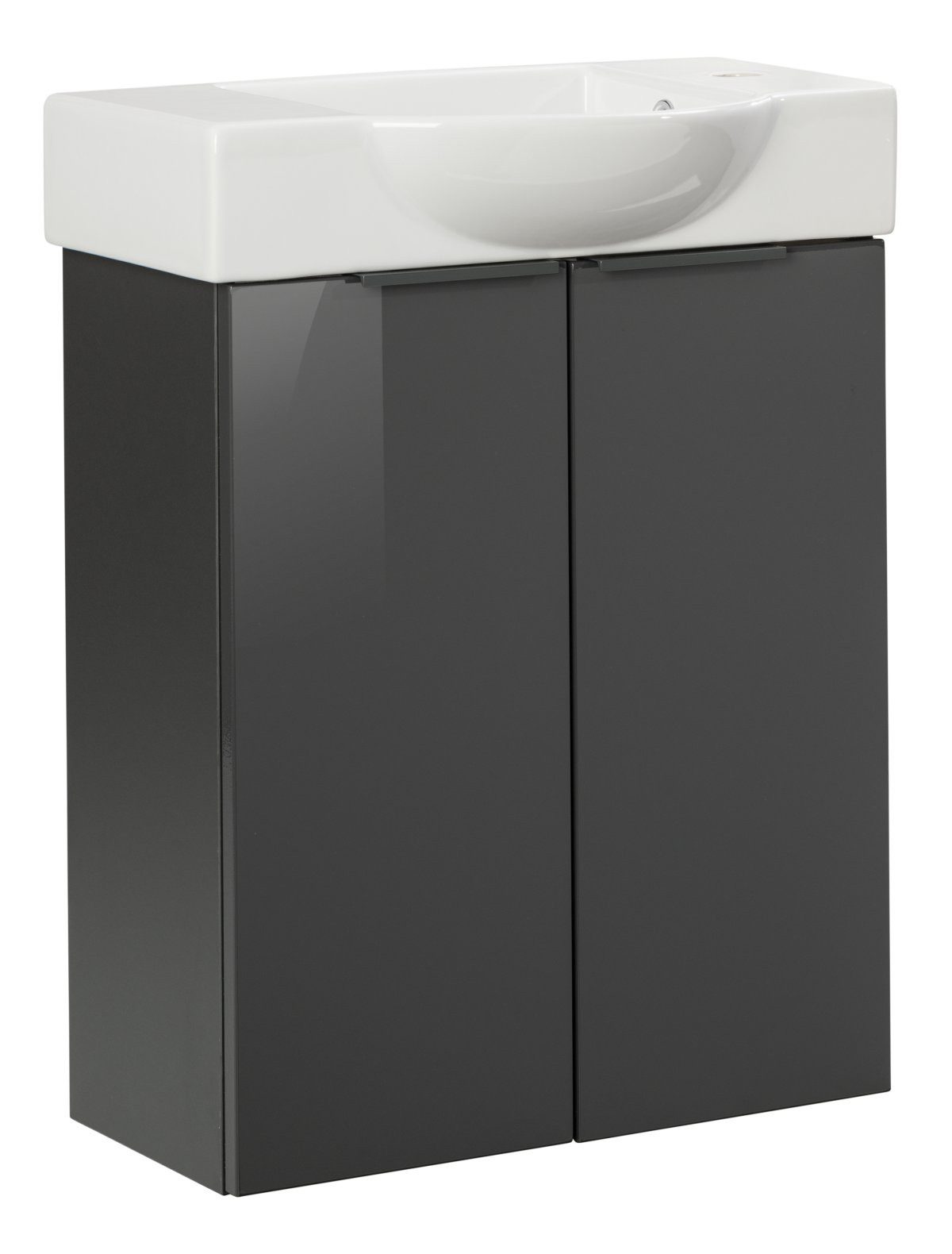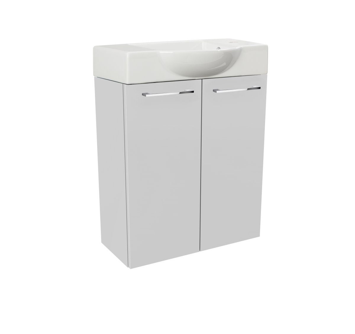 Das Möbel-Set von Fackelmann bietet eine Breite von 545 mm, was es besonders für räumlich begrenzte Badezimmer geeignet macht. Der Unterschrank und das Becken sind in einem schlichten Weiß gehalten, das sich nahtlos in jede Badezimmergestaltung einfügt. Die Fronten des Unterschranks sind ebenfalls in Weiß gehalten und sorgen für eine ruhige und reine Ausstrahlung. Die Türen des Unterschranks bieten praktischen Stauraum für Ihre Badezimmerutensilien.