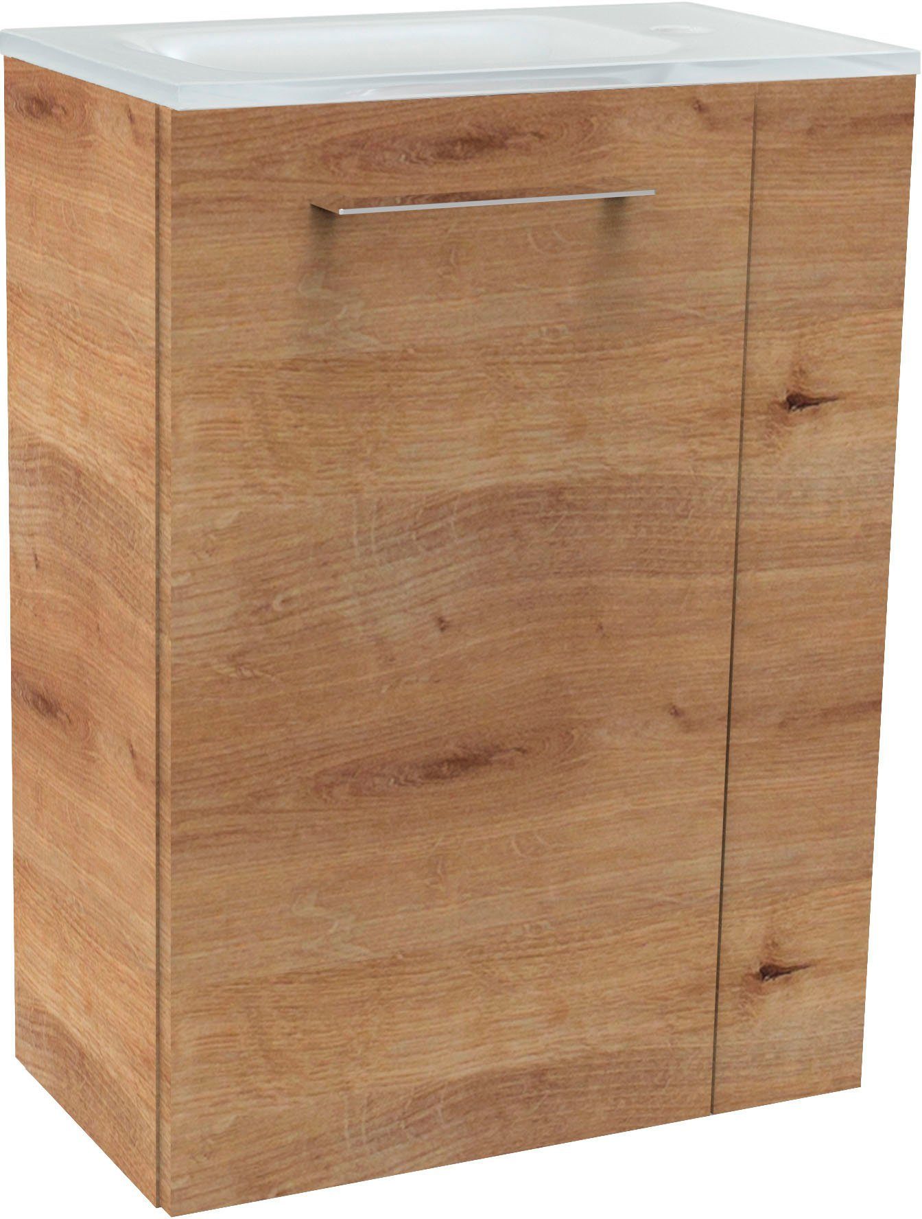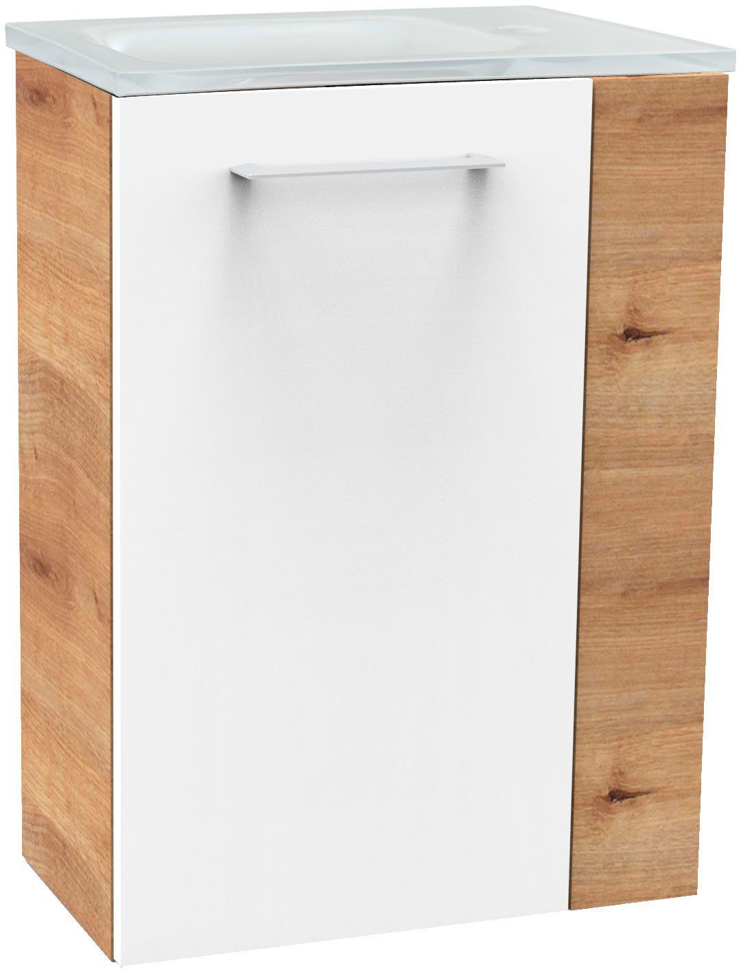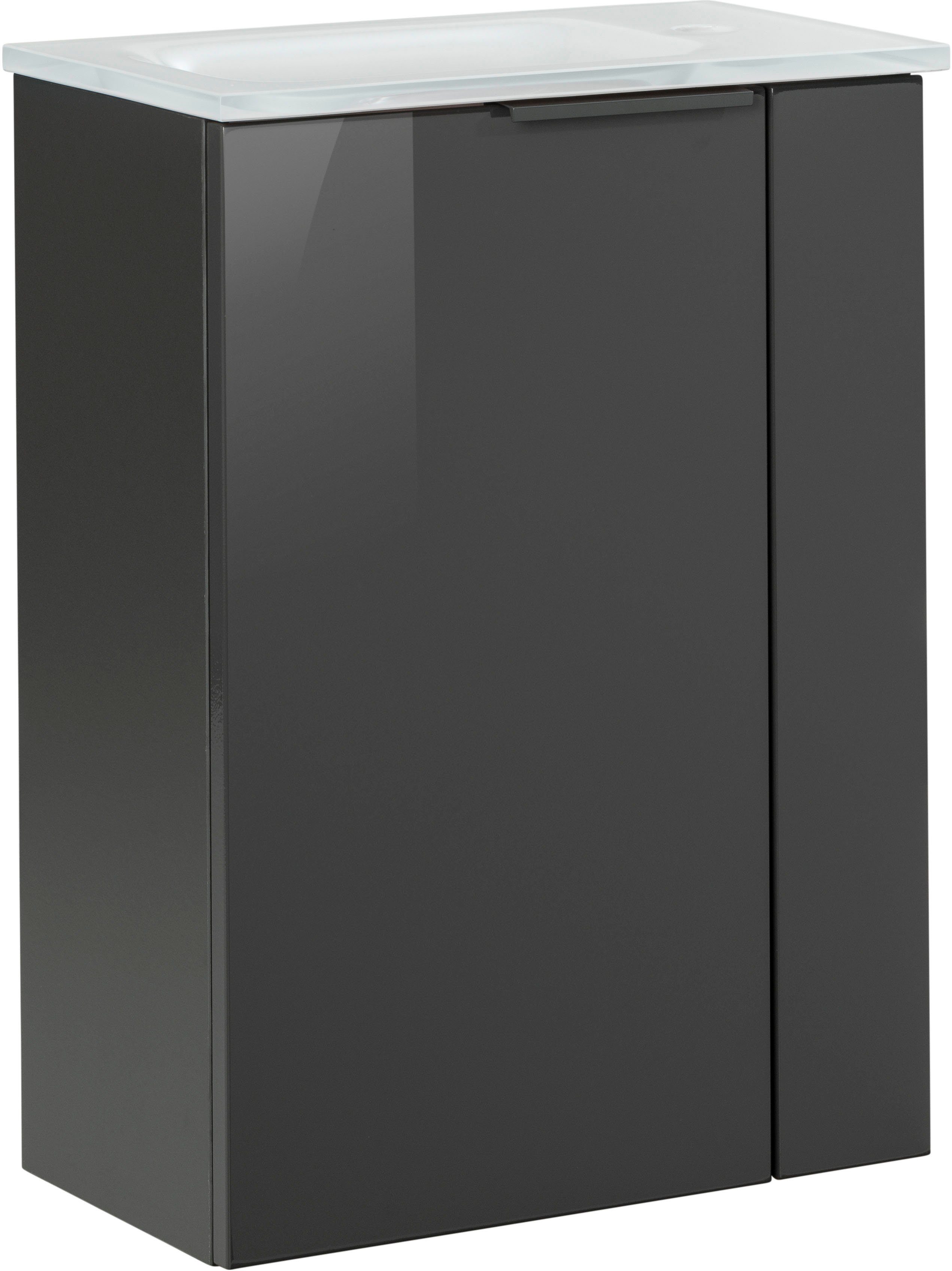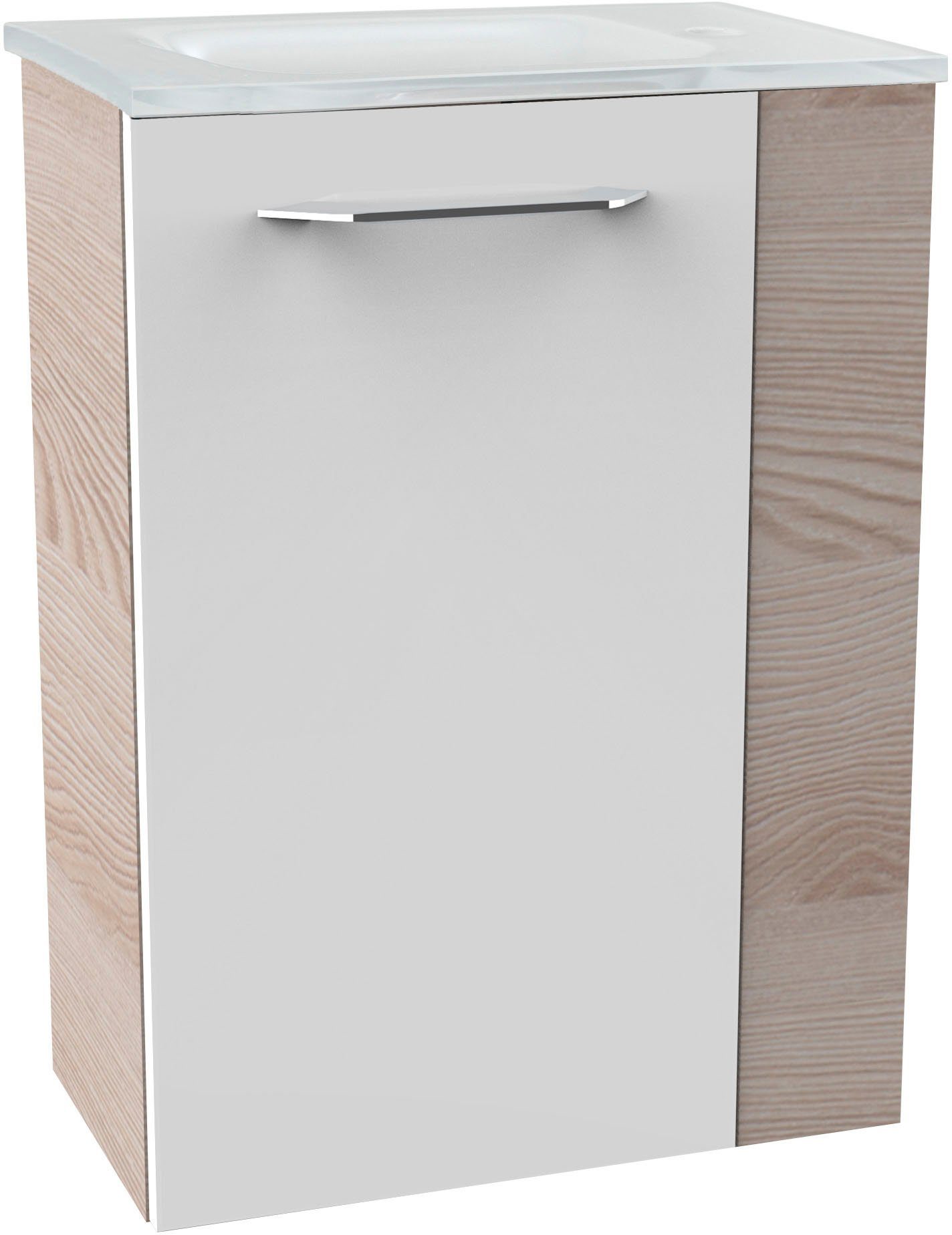 Lieferumfang | Glasbecken mit Permanentablauf Waschbeckenunterschrank 45cm |