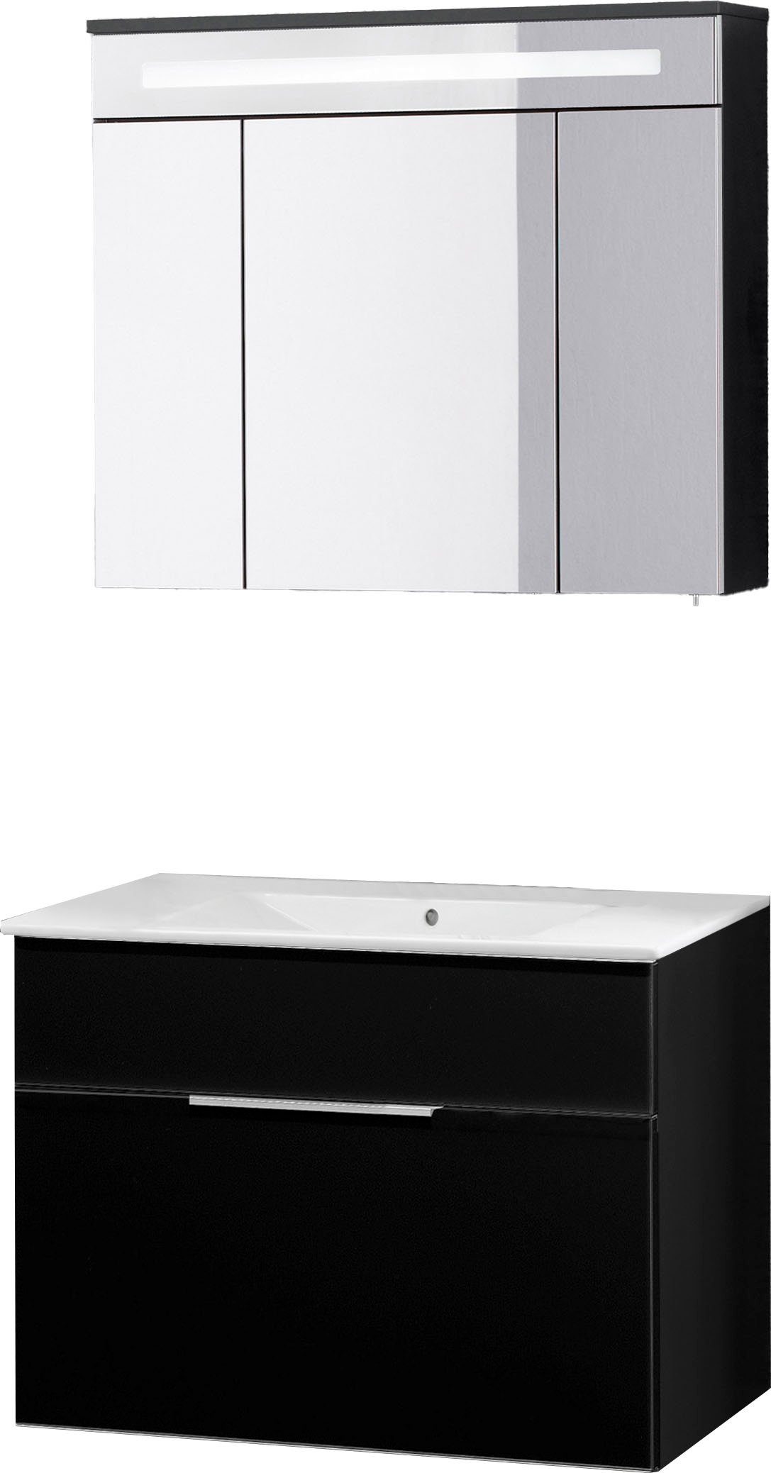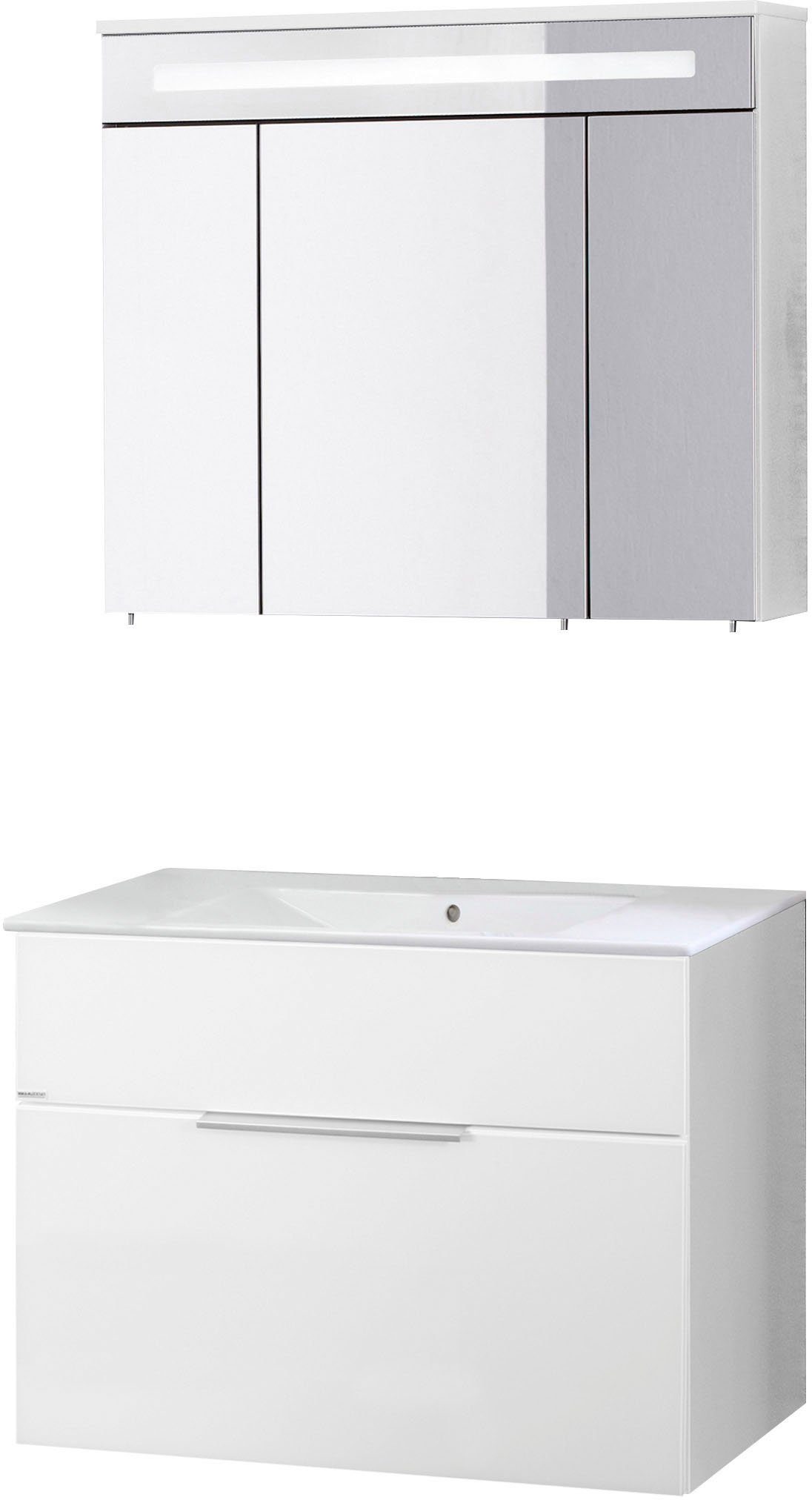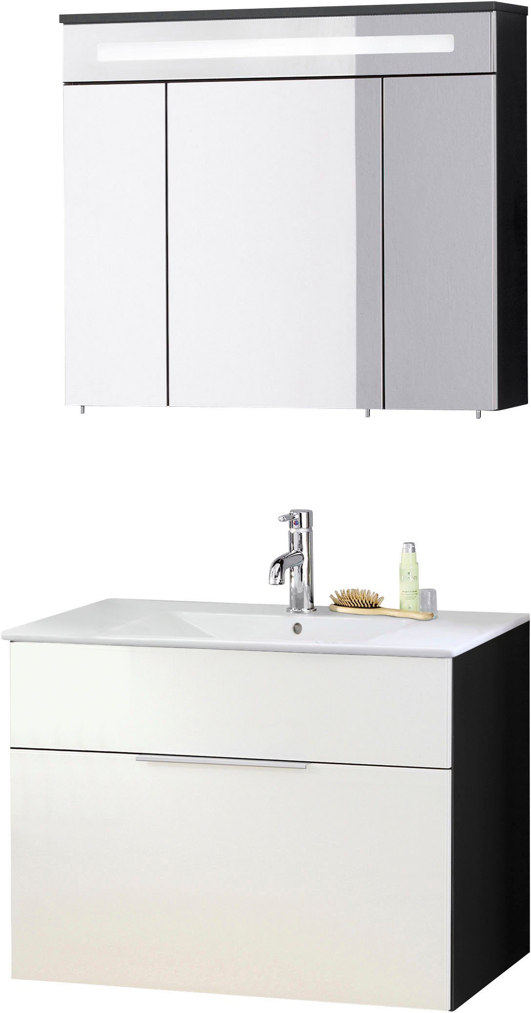 Lieferumfang | Spiegelschrank, Becken, Waschtischunterbau, Befestigungsmaterial, Montageanleitung |