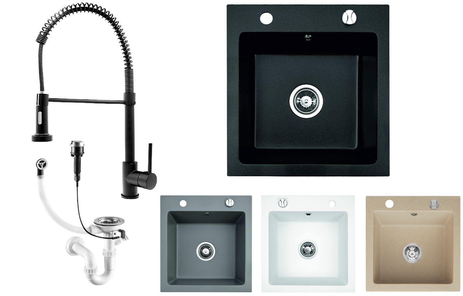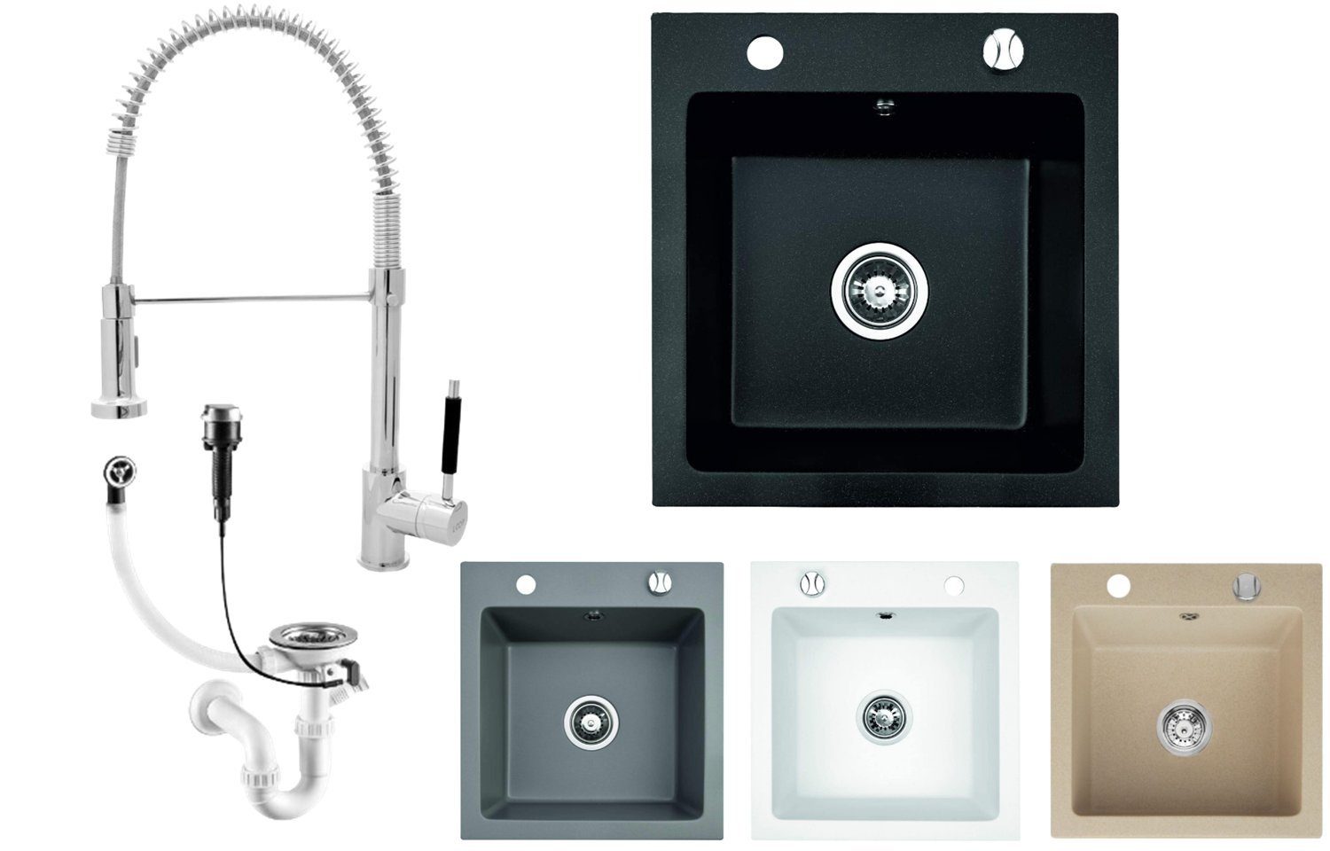 - Inkl. Markenhaftes Siphon Set (inkl. Anschluss für Wasch,- oder Geschirrspülmaschine)