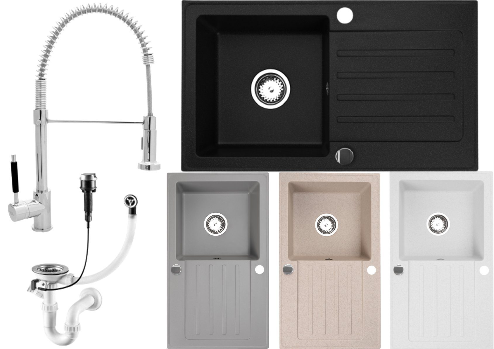 - Inkl. Markenhaftes Siphon Set (inkl. Anschluss für Wasch,- oder Geschirrspülmaschine)