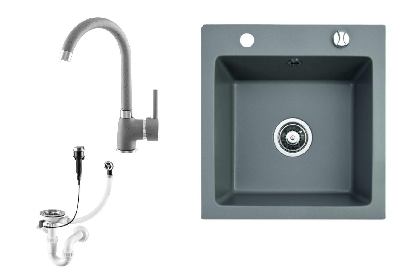 • Reversibel – Links oder Rechts montierbar • Inkl. sehr qualitative Markenhafte Ablaufgarnitur • Mit Drehexcenter, zum automatischen Öffnen und Спрятать des Ablaufes • Mit Anschluss für eine Waschmaschine oder Geschirrspüler • Sehr hart, kratzfest, hitzebeständig bis 280°C und UV-beständig • Vorgebohrt für eine Armatur • Hergestellt in EUROPA • 80 % mineralischen Quarzanteil und 20 % Acrylharz mit Farbpigmenten Granit • Mit Montageanleitung • Mit hochwertige Armatur • Inkl. Siphon