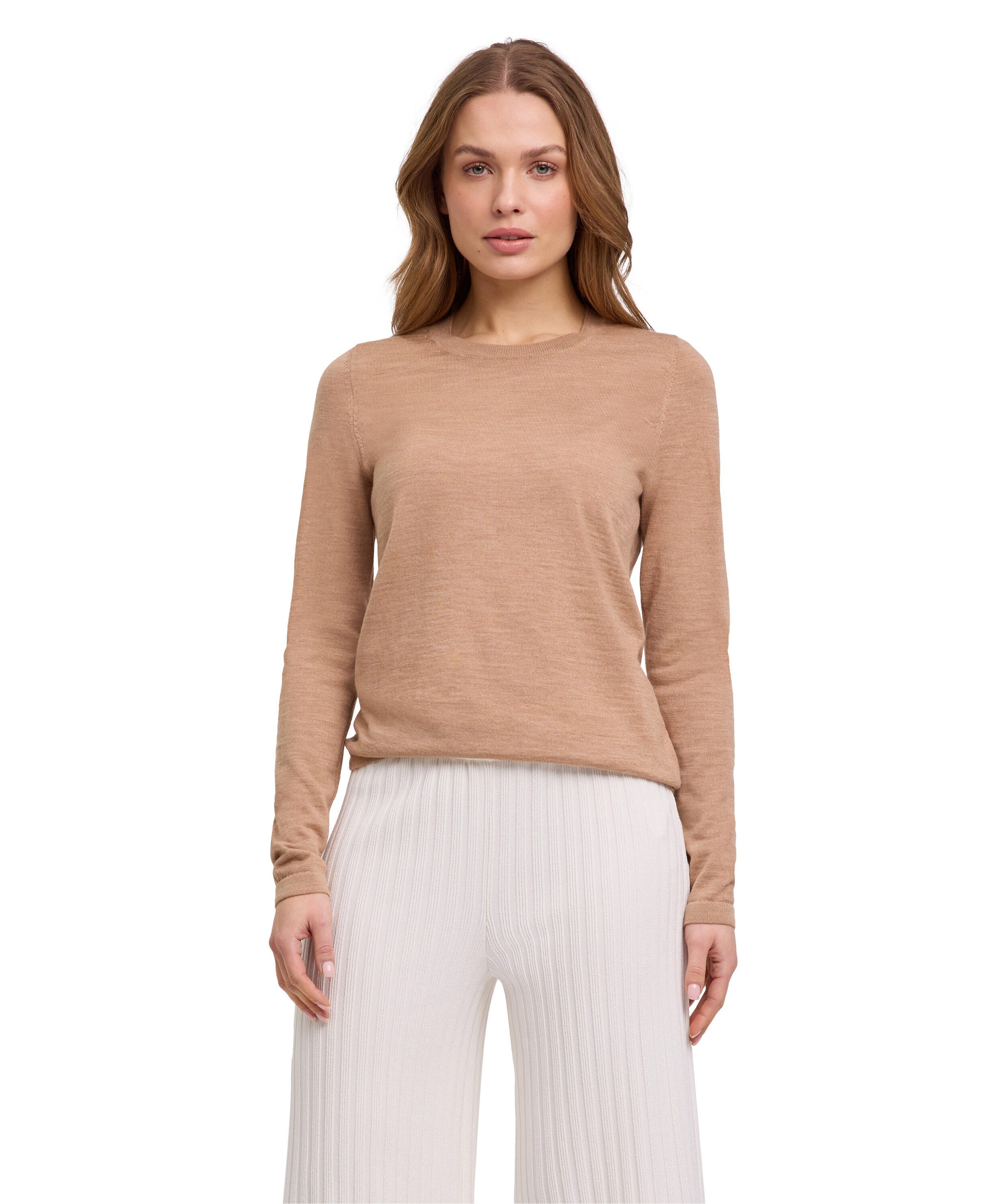 Der zeitlose Basic-Pullover mit Rundhalsausschnitt ist aus extrafeiner Merinowolle gestrickt. Die verwendete Jersey Strickart macht den Pullover besonders weich und pflegeleicht und garantiert eine optimale Passform sowie Langlebigkeit. Впередer Vorteil: Merinowolle ist von Natur aus atmungsaktiv und temperaturregulierend, wodurch die aus ihr gefertigten Produkte der perfekte Begleiter für jede Jahreszeit sind. Französische Schulternähte und eine fein gerippte Halsblende, Rumpf- und Ärmelbündchen runden den klassischen Look ab. Egal, ob Sie ein T-Shirt oder eine Bluse darunter tragen, der Pullover aus Merinowolle ist ein Klassiker und sieht sowohl casual getragen als auch im Business-Look hervorragend aus.
