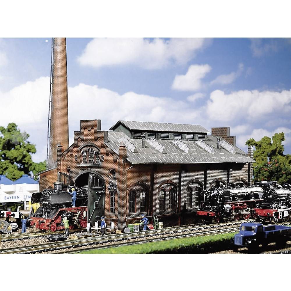 Ausstattung | Altersklasse: ab 15 Jahre · Ausführung (allgemein): Lokschuppen/Lokwerkstatt · Baugröße: H0 · Modellausführung (Modellbahn): Bausatz · Produktabmessung, Breite: 150 mm · Produktabmessung, Höhe: 275 mm · Produktabmessung, Длина: 266 mm |