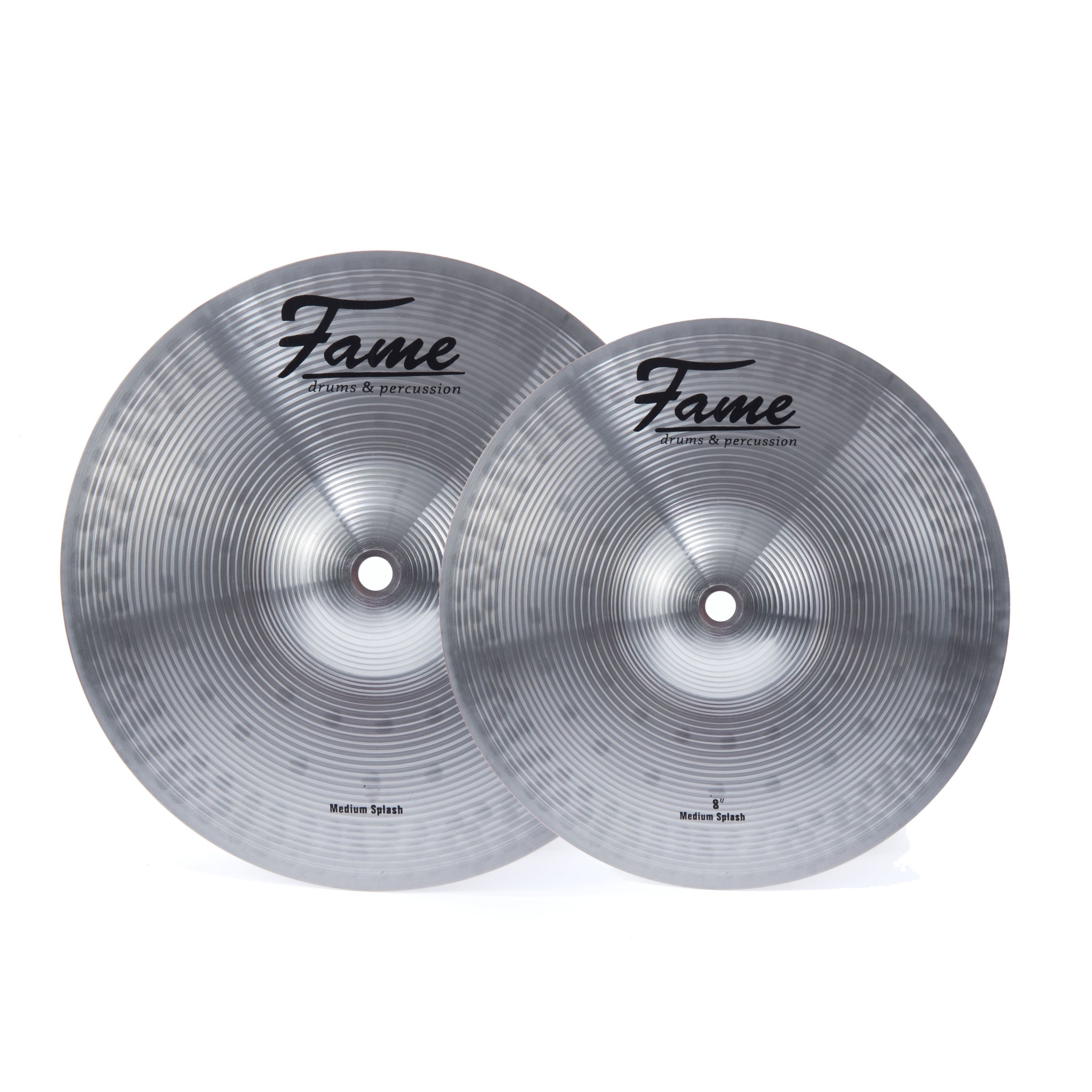 Lieferumfang | Fame Splash Beckenset, 8" & 10", Messing, Handgehämmertes Design, Für Schlagzeuger aller Levels, Hochwertige Klangqualität. Fame Splash Beckenset, 8" & 10", Messing, Handgehämmertes Design, Für Schlagzeuger aller Levels, Hochwertige Klangqualität.