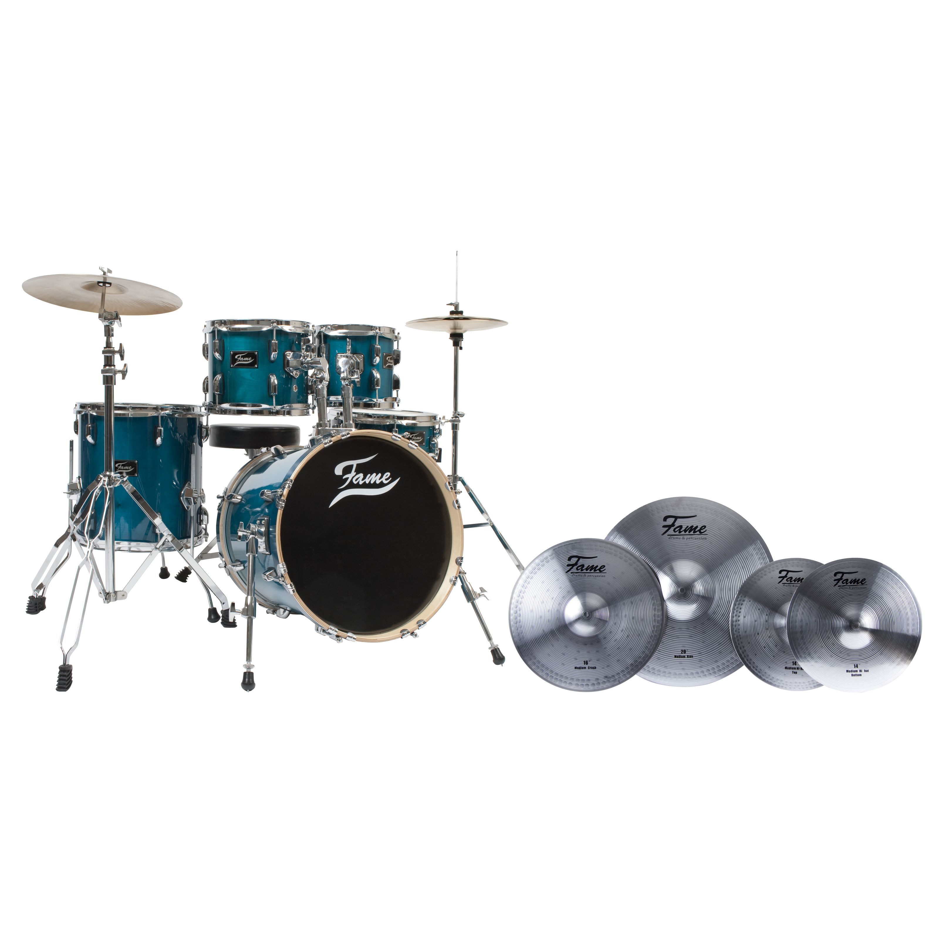 Lieferumfang | Komplettes Drum-Set: Enthält 16" BassDrum, 8" & 10" Toms, 13" Floor Tom, 12" Snare ideal für Einsteiger und Profis. Ahornkessel mit Chrom-Hardware und Stahlspannreifen exzellenter Klang und Langlebigkeit in Grün. Inklusive Becken: Vielseitige Klangoptionen, geeignet für verschiedene Musikstile und dynamisches Spiel. Stabile Ständer sorgen für sicheren Halt und flexible Positionierung der Becken sie sind robust und verstellbar. Praktisches Zubehör: 10" Practice Pad für leises Üben und Technikverbesserung ideal für Zuhause und unterwegs. MS-ID: DRU732 Hersteller: Fame Konfiguration: Mit 16" BassDrum Kesselmaterial: Ahorn Kesseloberfläche: Folie Farbe: Grün Sparkle: Nein Fade: Nein Kessel-Hardware: Chrom Signature: Nein Spannreifenmaterial: Stahl Freischwingende Tomaufhängung: Nein BassDrum mit Rosette: Ja Размер Tom 1: 8" x 6,5" Размер Tom 2: 10" x 8" Размер Floor Tom 1: 13" x 13" Размер Snare: 12" x 4" Размер Bass Drum: 16" x 16" gefederte Gummifüße: Nein Stimmsicherung: Nein Gummiunterlegte Kessel-Hardware: Nein Vorgedämpftes BassDrum-Fell: Nein Anzahl Holzlagen Snare Drum: 9 Anzahl Holzlagen Bass Drum: 9 Anzahl Holzlagen Toms: 9 inkl. Hardware: Ja inkl. Becken: Ja inkl. Tomhalter: Ja |