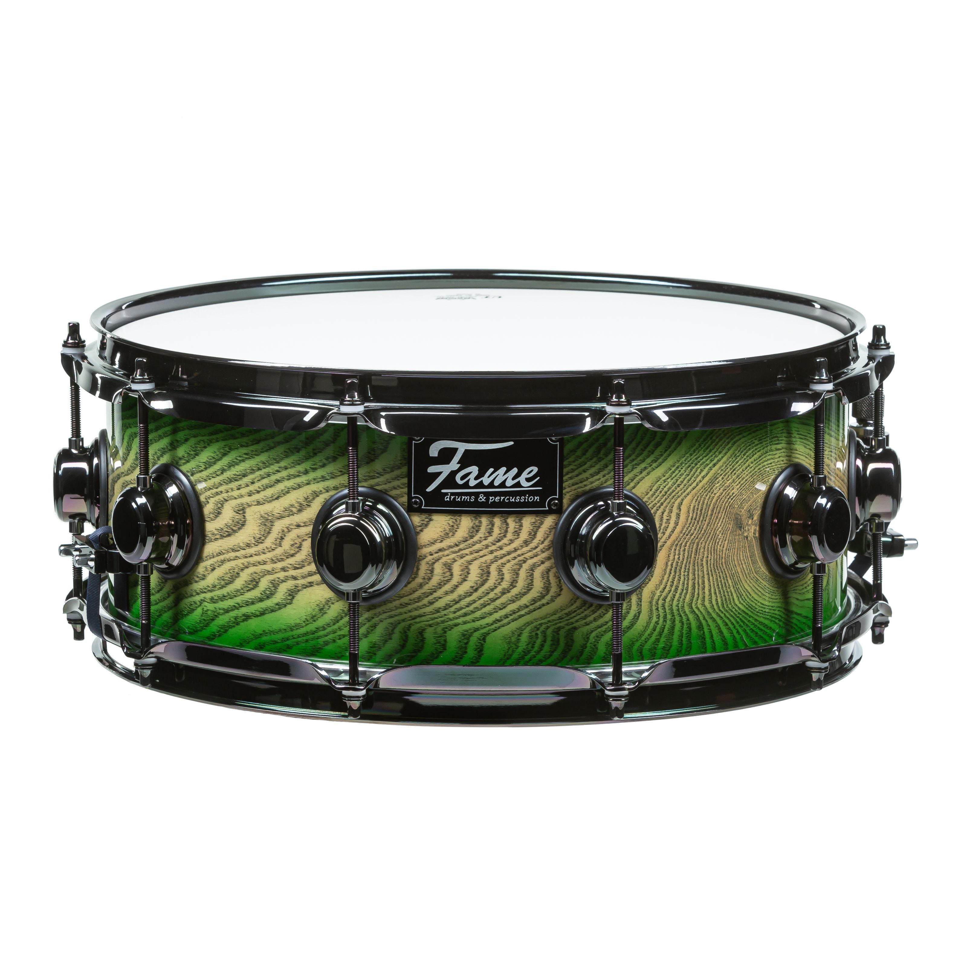 Lieferumfang | MS-ID: DRU0043321-000 Hersteller: Fame Kesselmaterial: Esche/Birke Kesseloberfläche: Lack Hochglanz Farbe: Grün Kessel-Hardware: Schwarz Kesselgröße (Zoll): 14 Kesseltiefe (Zoll): 5.5 Signature: Nein Spannreifenmaterial: Stahl Anzahl Spannschrauben pro Seite: 10 Farbbezeichnung: Green Burst |