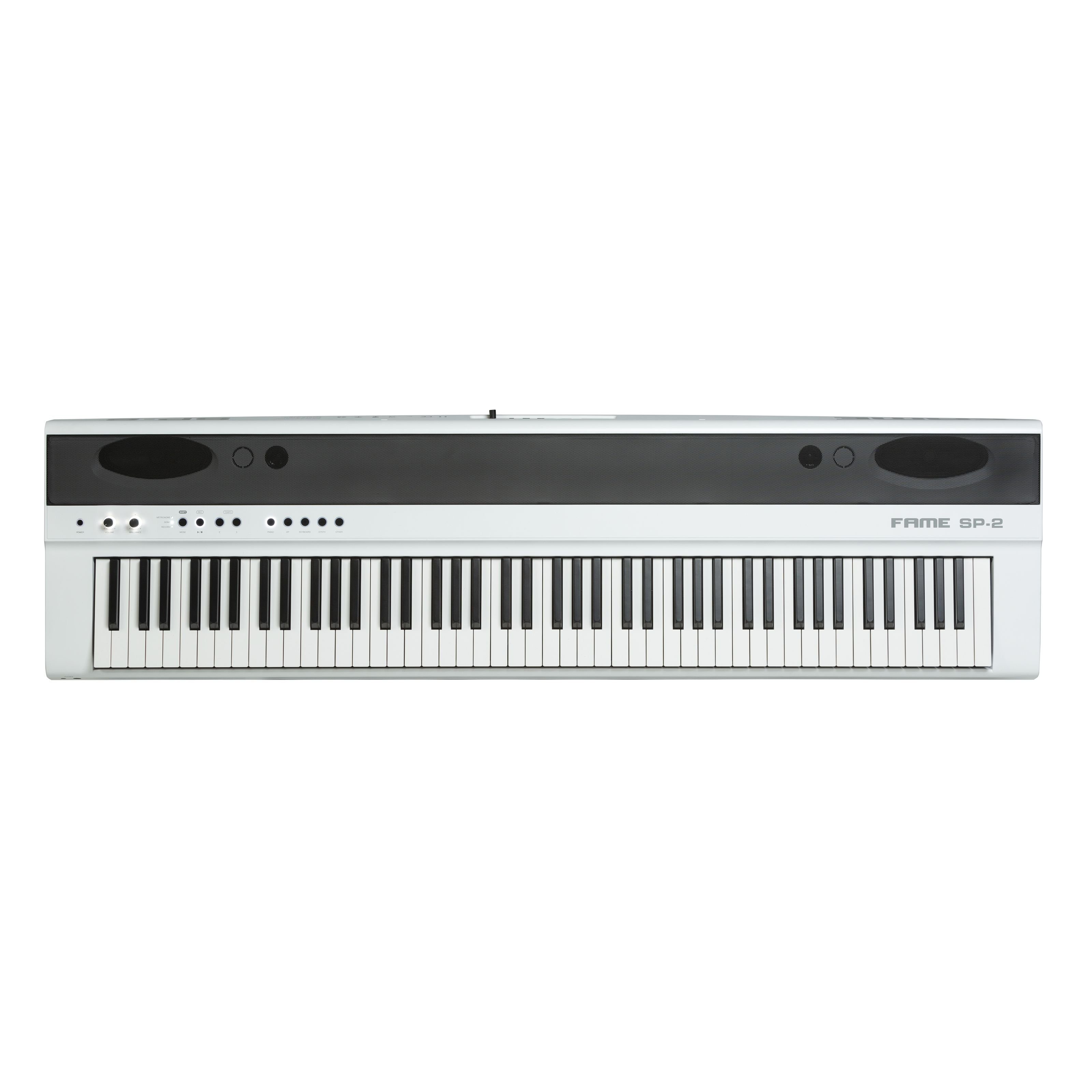 Lieferumfang | Ideal für Einsteiger und Bands: Das SP-2 ist ein schickes Stagepiano mit ausgewählten Klängen und Funktionen die sich gleichermaßen an Anfänger und routinierte Musiker in Bands richten. Features: Das Digitalpiano verfügt über eine gewichtete 88 Tasten Hammermechanik-Klaviatur, 192 Stimmen, 2x 20 Watt Stereo Lautsprecher, 25 Sounds, 50 Begleitrhythmen, 100 Songs, Metronom sowie Reverb und Chorus Effekte. Anschlüsse: Neben dem Audioausgang, mit dem sich das SP-2 an einen Verstärker oder eine HiFi-Anlage anschließen lässt gibt es einen Audioeingang für externe Geräte wie z.B. CD-Player oder das Smartphone. Über USB kann das SP-2 seine Sounds direkt in eine DAW zum aufnehmen senden und fungiert zugleich als MIDI-Masterkeyboard. Zusätzlich lässt sich ein Sustain-Pedal anschließen. Einfach spielen: Die eingebauten, kraftvollen 20 Watt Stereo Lautsprechersystem machen das spontane Pianospiel zum reinsten Vergnügen und klingen dabei gut. Um z.B. auch nachts nicht aufs Spielen verzichten zu müssen bieten sich die beiden frontseitigen Kopfhöreranschlüsse an. USB-Audio und USB-MIDI Schnittstellen für einfache Verbindung mit anderen Geräten und kreative Möglichkeiten. MS-ID: KEY0005494-000 Hersteller: Fame Bauform / Tastenanzahl: 88 Tastaturausführung: Hammermechanik Anschlagdynamik: Ja Tonerzeugung: Digital Velocitykurve einstellbar: Ja Anzahl Drehregler: 2 USB MIDI Schnittstelle: Ja Kopfhöreranschluss: Ja Sustain Pedalanschluss: Ja Aufnahmemöglichkeit: MIDI-Linearsequenzer Lautsprecher: Ja Midi Schnittstelle: Ja LINE IN: Ja LINE OUT: Ja inkl. Netzteil: Ja Pedal mitgeliefert: Ja Gewicht (kg): 12.5 Gewicht Range (kg): 10 - 15 Leuchttasten: Ja integr. Effektprozessor: Ja Anzahl Sounds: 25 Anzahl Styles: 50 Polyphonie: 192 Keyboard Split: Ja Stromversorgung: Netzteil extern Breite (cm): 136.5 Höhe (cm): 13.4 Tiefe (cm): 36.6 Verstärkerleistung Watt: 2 x 20 |