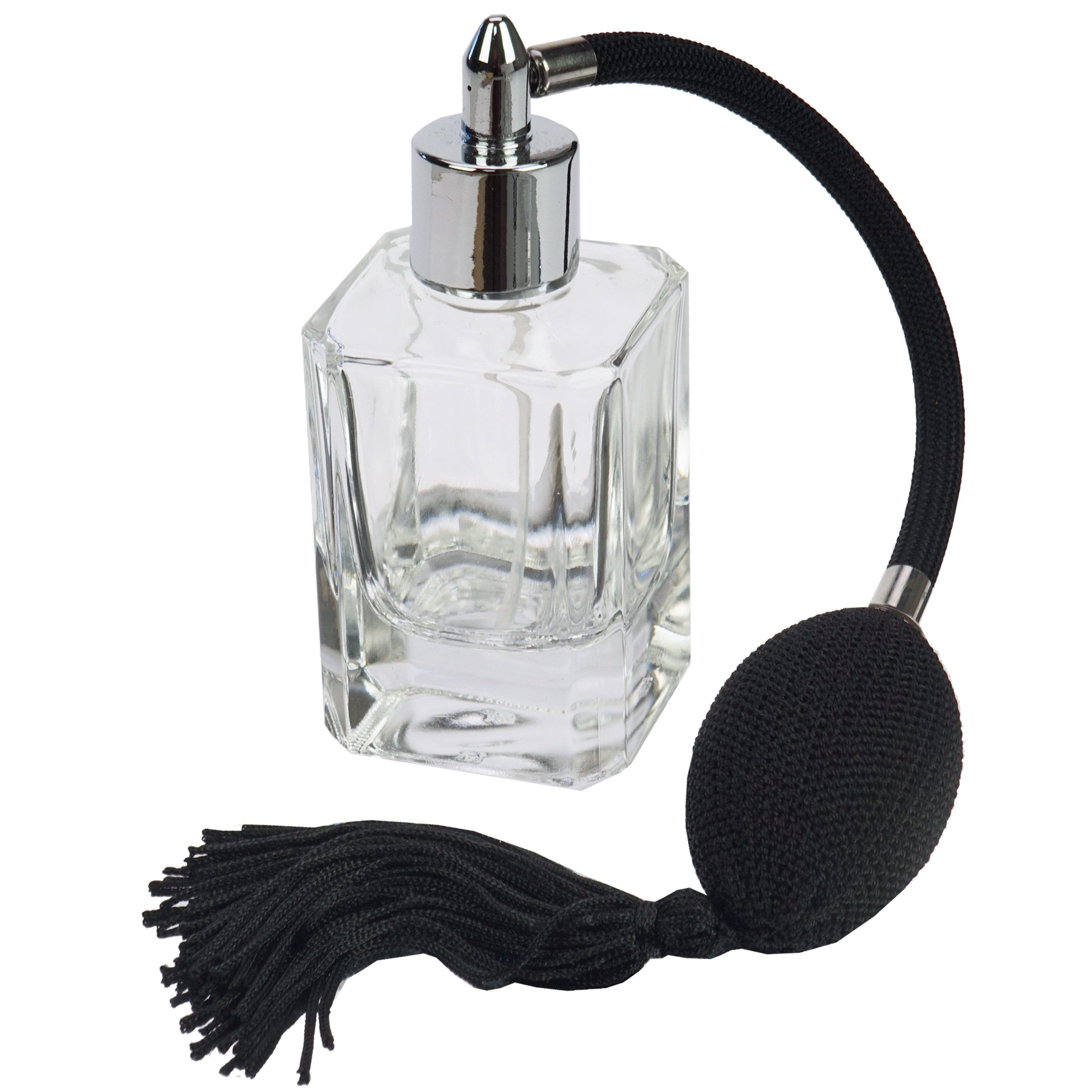 Tischzerstäuber, Glas eckig, mit Ballpumpe, schwarz-chromfarben, für 50 ml, Höhe: 12 cm Die edle Sprühflasche in schwerer Qualität ist ideal für die Aufbewahrung von Parfüm, Wasser, ätherischem Öl. Für Mann und Frau vielseitig verwendbar! Der 50ml Parfumzerstäuber ist der perfekte Begleiter für den Schminktisch oder das Bad. Bei Lieferung ist der der Flakon mit Ballpumpe leer. Leicht auffüllbar. Mit dem Zerstäuber für Parfüm können Sie den Duft jederzeit auffrischen! Der edle Flakon mit Qualitätssprühkopf ersetzt Ihre Parfümflasche! Ein tolles Geschenk für Frauen, auch als Geschenkset für Herren geeignet. Parfümzerstäuber aus Glas, eckig, mit silbernen Highlights und schwarzer Pumpe.