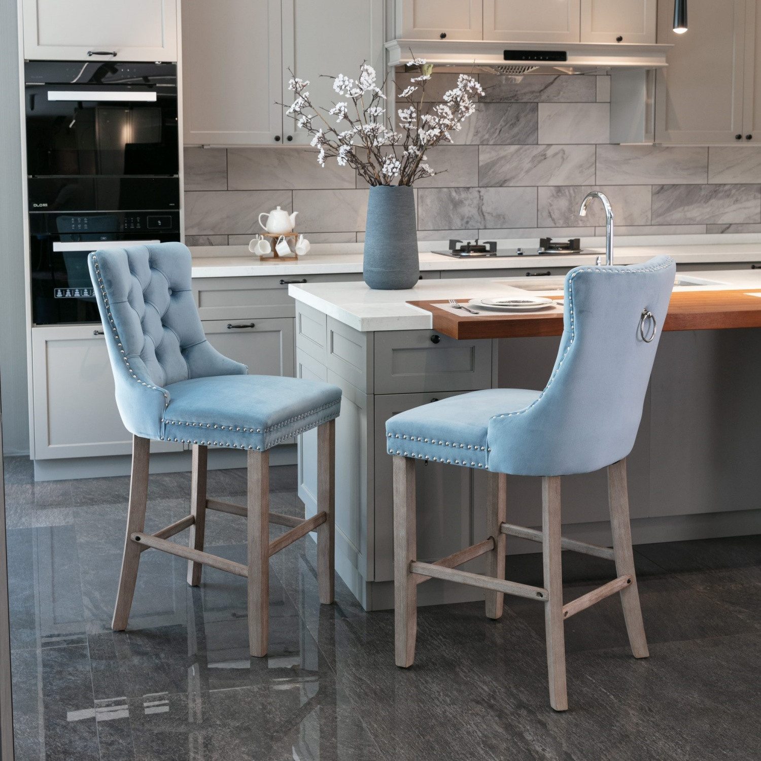 Langlebiges Esszimmerstühle 2er Set für Daily Use: Das stabile Esszimmerstühle 2er Set besteht durchgängig aus massivem Gummibaumholz für jahrelange Nutzung. Diese Stühle sind mit 60x49.5x67 cm ideal für Kücheninseln und Bartresen. Ein zuverlässiges 2 Stühle Set das Eleganz und Funktionalität vereint.