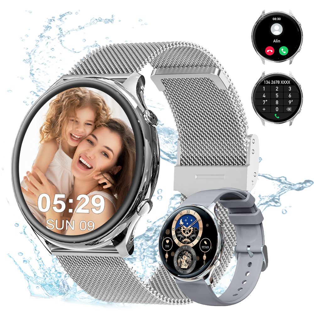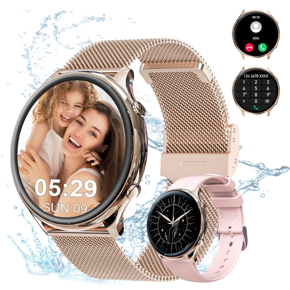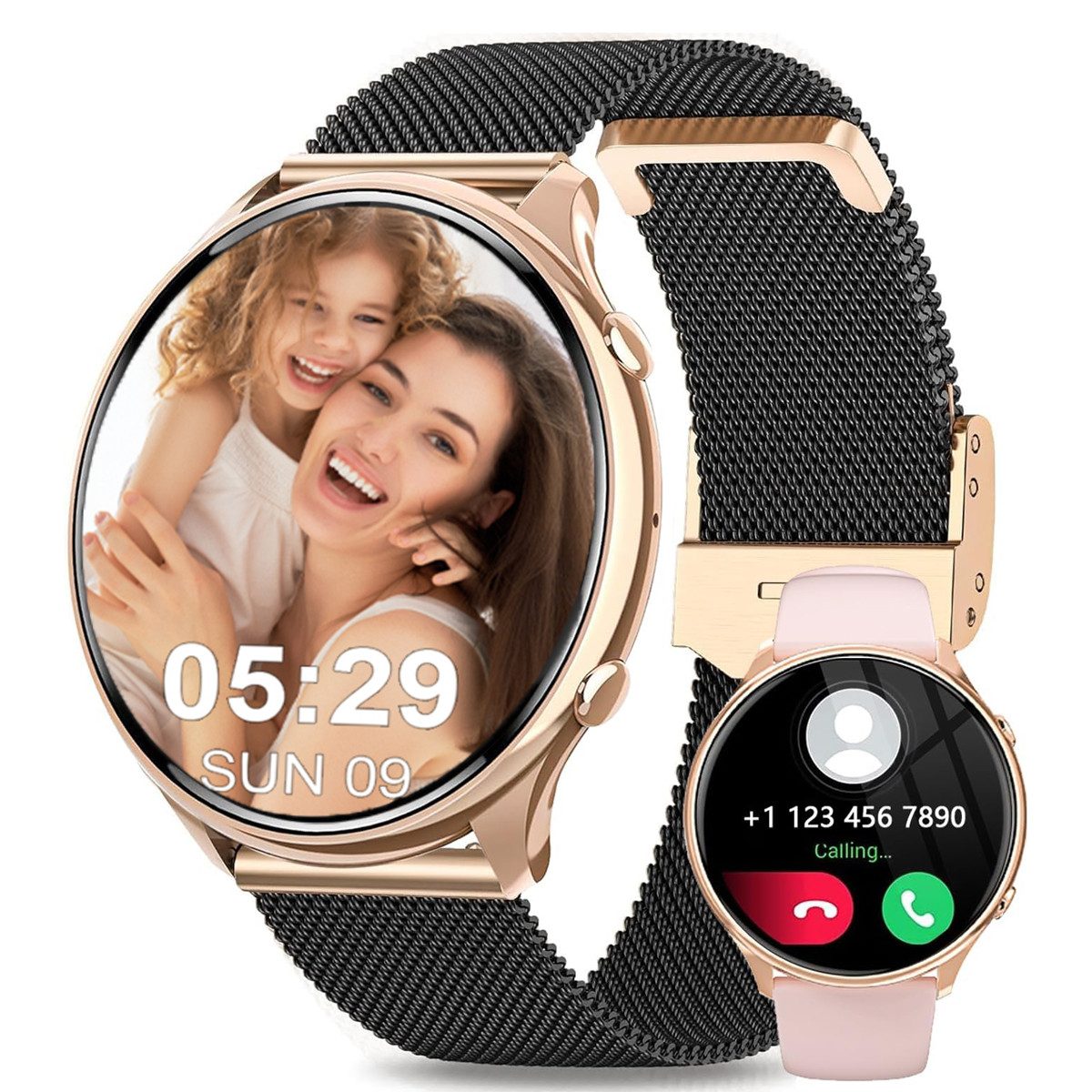 Speziell für Frauen entwickelt: Die neueste Damen-Smartwatch verfügt über einen 1,39-Zoll-Full-Touchscreen mit ultrahoher Auflösung von 360 x 360 und gebogenem 2,5D-Glas. Die Anzeige ist klarer und schonender für die Augen. Das Gehäuse wiegt nur 39 g und mit dem Milanese-Armband und dem Silikonarmband eignet es sich für jede Art von Alltagskleidung oder verschiedene Lebenssituationen und ist für Frauen geeignet, die schon lange Smartwatches tragen.