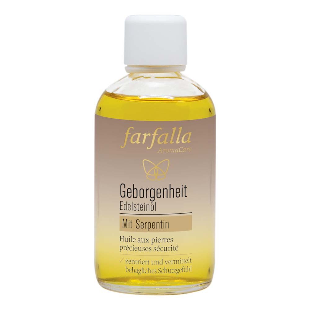 Mazeration von weissem Achat, Nephrit und Serpentin in Jojobaöl und mit den ätherischen Ölen Vanille, Sandelholz, Benzoe Siam, Orange süss. Stärkt das Selbstvertrauen und vermittelt Schutz und Geborgenheit. Fördert Ausgeglichenheit und Kreativität und führt zur eigenen Mitte. Ein schönes Öl auch zur Massage von Kindern. Zur Unterstützung der Wirkung enthält jede Flasche einen kleinen Serpentin. Dieses kostbare Edelsteinöl wird in einem aufwändigen und geschützten Verfahren hergestellt.