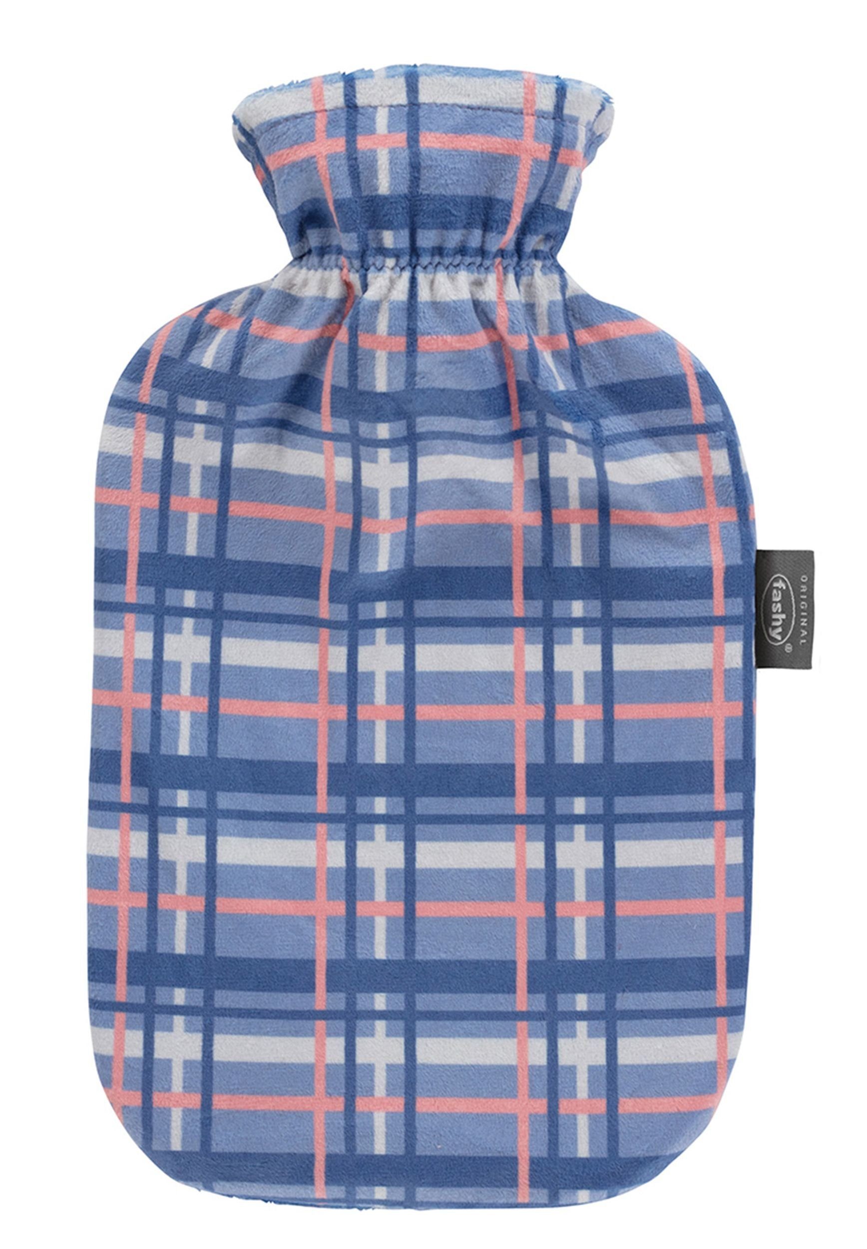 Fashy Wärmflasche Wärmflasche mit Bezug Flauschbezug Karodesign Blau 2 L Fashy 67436-56