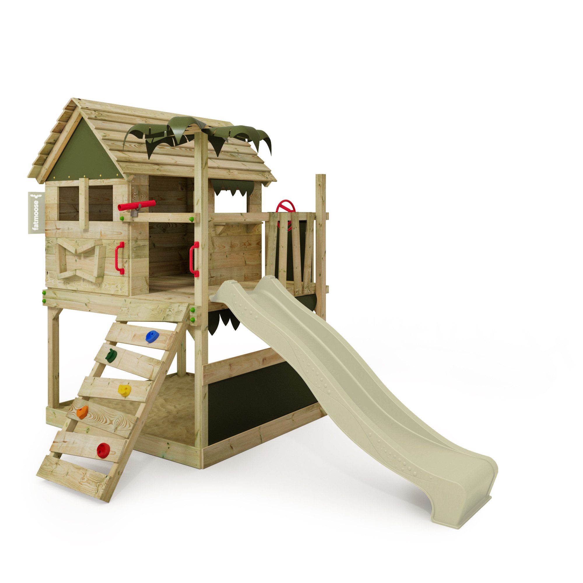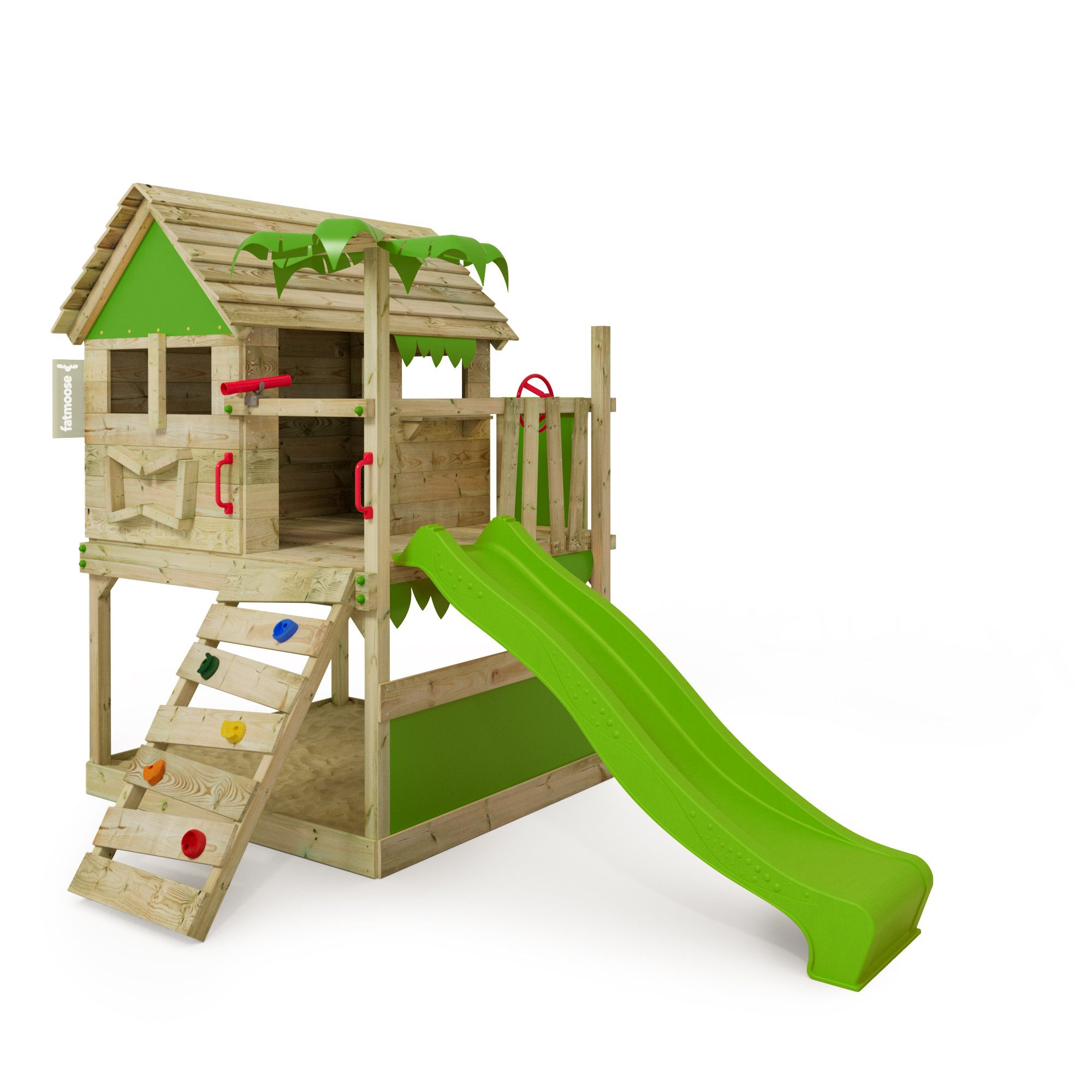 Der FATMOOSE Spielturm TikaTaka Town XXL ist in vier Вариантыn erhältlich, um jedem Garten und Spielbedürfnis gerecht zu werden: