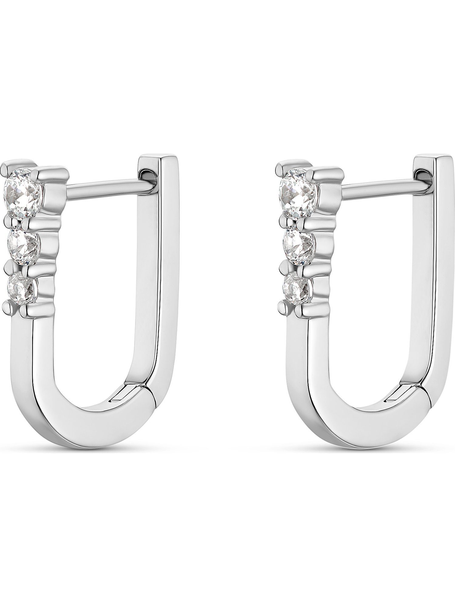 Creolen müssen nicht zwangsläufig rund sein, um schmucktechnisch zu überzeugen. Diese aus dem Hause FAVS zeigen Ecken und Kanten, was ihnen eine besonders ansprechende Optik verleiht. Das auf Hochglanz polierte 925er Silber zieren je 3 verschieden große Zirkonia, die für ein fantastisches Funkeln sorgen. Diese Creolen sind schlicht und unaufdringlich, bestechen aber auf den ersten Blick mit innovativem Design und dem Spiel mit spannenden Kontrasten.