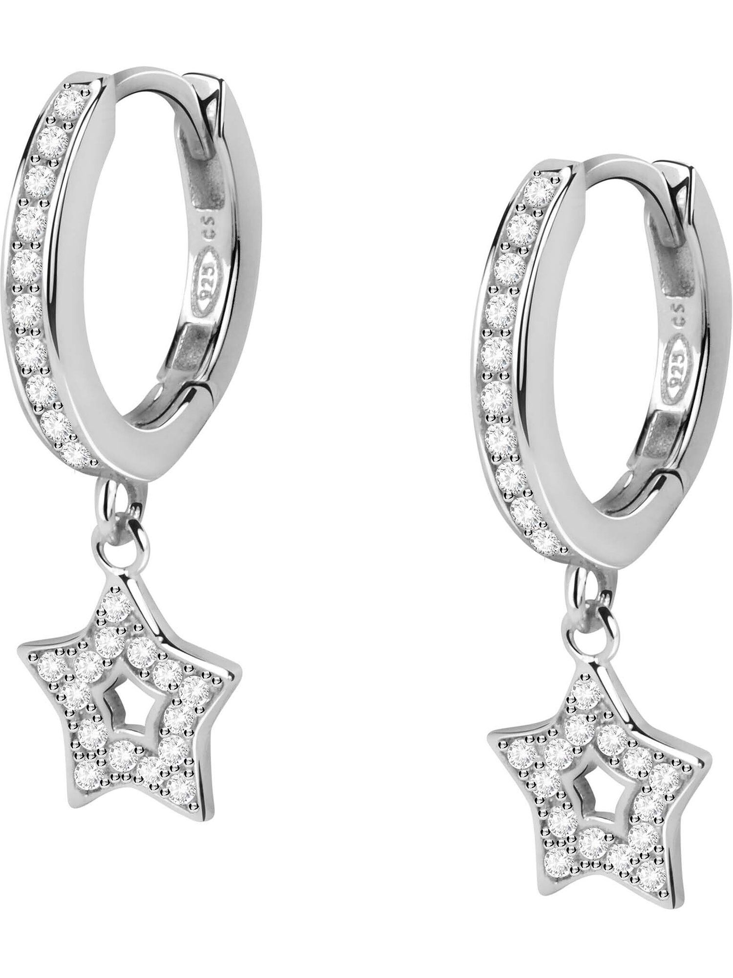 Lucky stars: Mit ihrem 2-teiligen Design fügen diese FAVS Ohrringe aus 925er Silber deinen Outfits eine dynamische Note hinzu. Die kleinen Creolen sind mit einem Besatz aus weißen Farbsteinen und einem praktischen Klappverschluss versehen. Auch im sternenförmigen Anhänger haben die runden Zirkonia ihren Platz gefunden. Trage die verspielten Schmuckstücke einzeln oder in Kombi mit weiterem Ohrschmuck – in deinem ganz eigenen Stil.