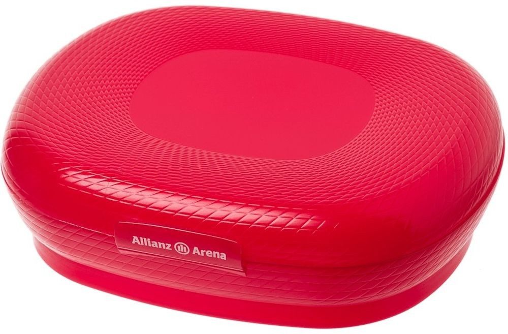 Rote Brotdose Arena vom FC Bayern München, Allianz Arena-Logo auf dem Klippverschluss, Typisches Rautenmuster, Размер 17, 5 x 14, 5 x 5 cm