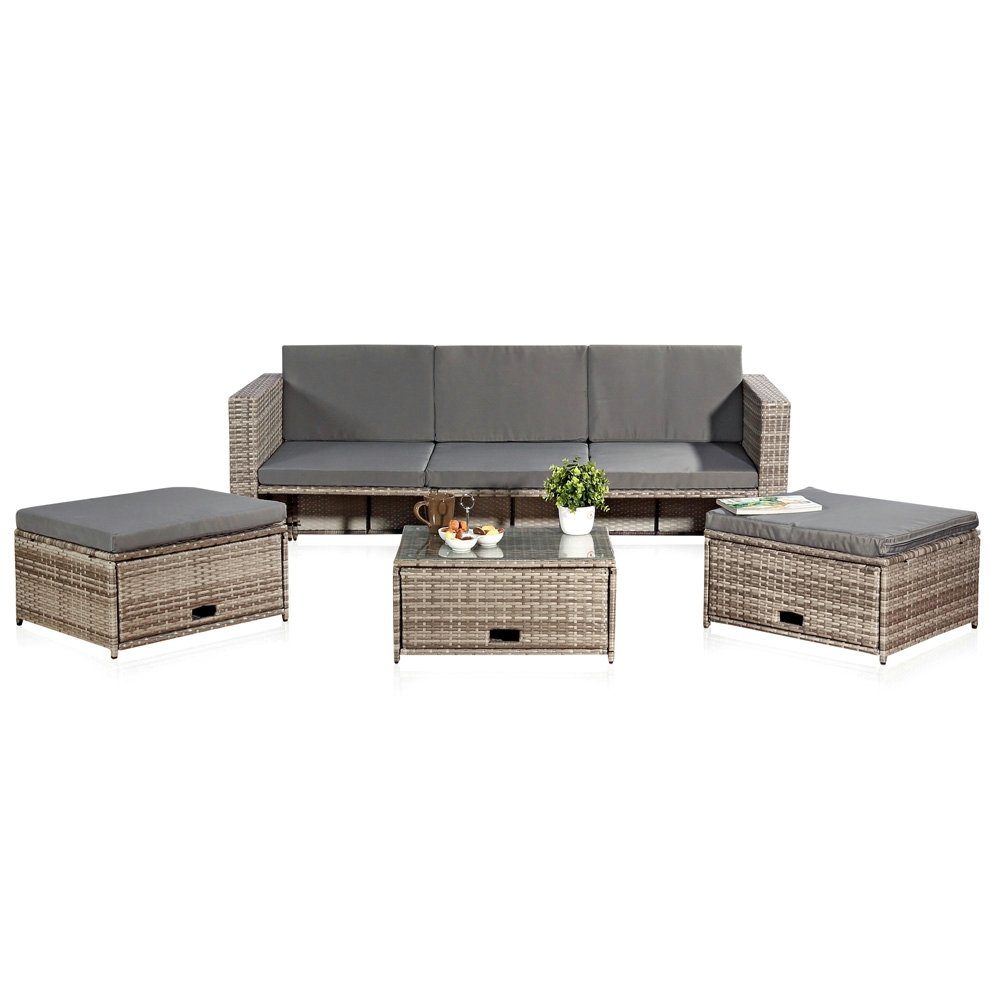 Unser Lounge Set in elegantem Grau verwandelt Ihren Außenbereich in eine moderne Wohlfühl-Oase. Das hochwertige Polyrattan verleiht Ihrem Garten eine zeitlose Eleganz.