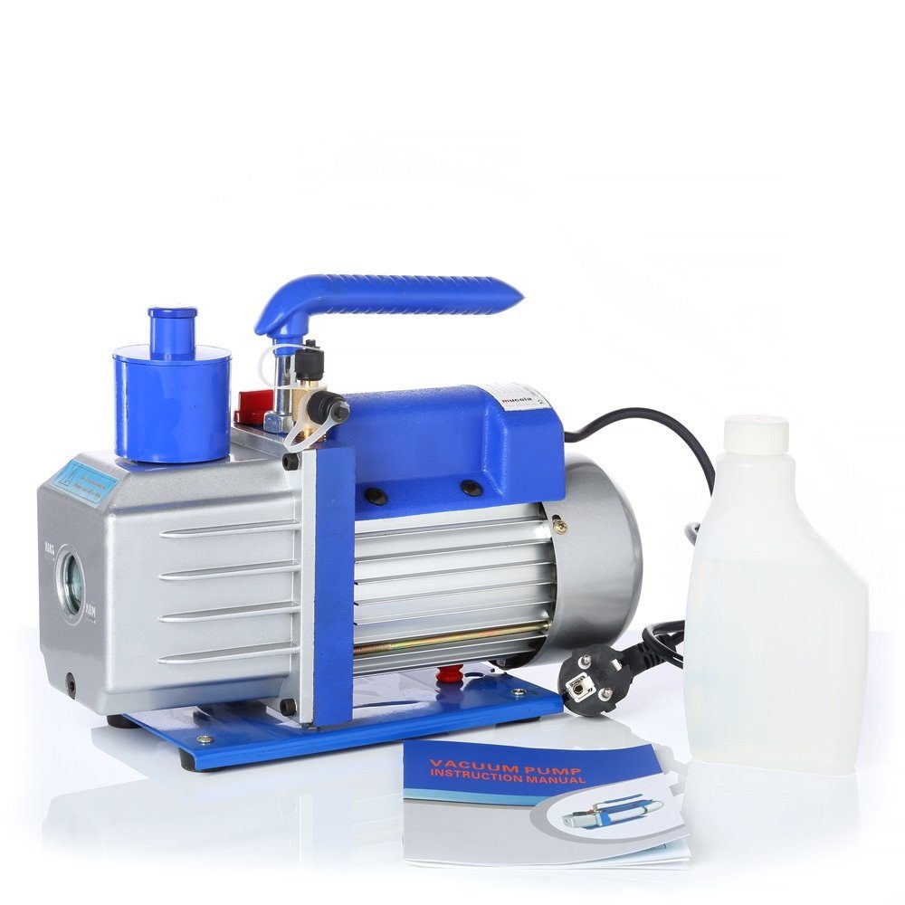 Diese Vakuumpumpe ist für den professionellen Einsatz in Kälte-Klimaanlagen vorgesehen. Die Pumpe erzeugt einen Unterdruck, der das anschließende Befüllen der Klimaanlage mit Kältemittel ermöglicht. Durch ihre technischen Eigenschaften ist die Unterdruckpumpe jedoch auch für die Verwendung im Modellbau sowie in der Kunststoffverarbeitung geeignet. Die Pumpe besteht aus einem Aluminium-Gehäuse und besitzt ein praktisches Öl-Schauglas, mit dem der Ölstand jederzeit kontrolliert werden kann. Durch den praktischen Handgriff kann die Pumpe einfach transportiert werden.