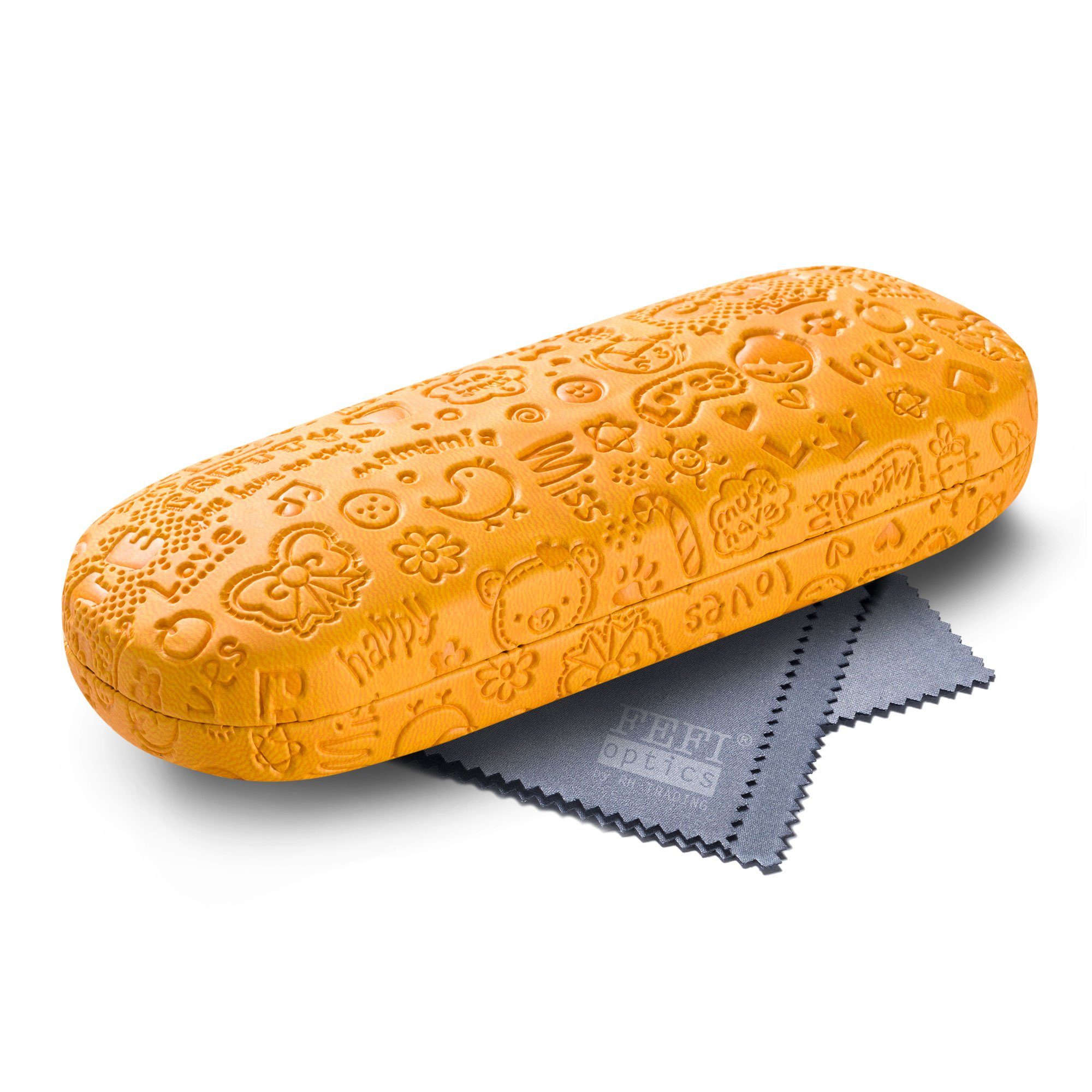 Das original FEFI Brillenetui in cooler Präge-Optik mit Brillenputztuch in Optikerqualität - Neu in unserer Collection. Sicheren Schutz für Ihre Brille garantiert dieses schöne Hardcover Etui, und dazu sieht es noch extrem cool aus mit seiner aufwändigen Prägetechnik. Der kräftige Schnappverschluß hält Ihr Etui sicher geschlossen und das Metallscharnier garantiert, dass Sie lange Freude an diesem tollen Etui haben. Innen sorgt ein weicher, farblich passender Samtbezug dafür, dass Ihre Brille geschützt ist. Im Set mitgeliefert, wird ein hochwertiges Mikrofasertuch in Optikerqualität, das sich wohlwollend von oft hauchdünnen, billigen anderen Tüchern unterscheidet.