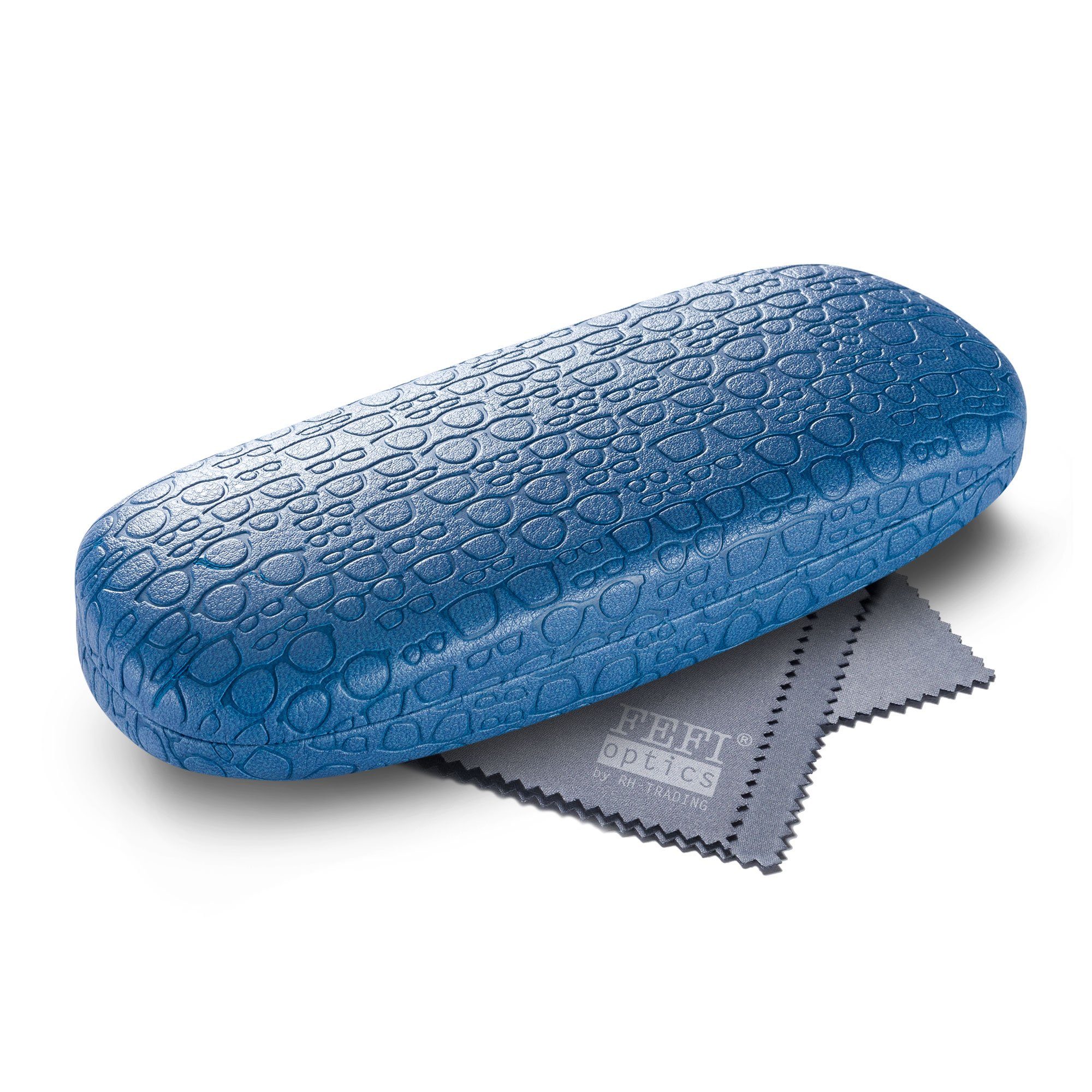 Das original FEFI Brillenetui in cooler Präge-Optik mit Brillenputztuch in Optikerqualität - Neu in unserer Collection. Sicheren Schutz für Ihre wertvolle Brille garantiert dieses schöne Hardcover Etui, und dazu sieht es noch extrem cool aus mit seiner dekorativen Prägetechnik. Der kräftige Schnappverschluß hält Ihr Etui sicher geschlossen und das Metallscharnier garantiert, dass Sie lange Freude an diesem tollen Etui haben. Innen sorgt ein weicher, samtartiger Bezug dafür, dass Ihre Brille geschützt ist. Im Set mitgeliefert, wird ein hochwertiges Mikrofasertuch in Optikerqualität, das sich wohlwollend von oft hauchdünnen, billigen anderen Tüchern unterscheidet. Das gelieferte Bundle besteht aus: 1 Etui + 1 Mikrofasertuch