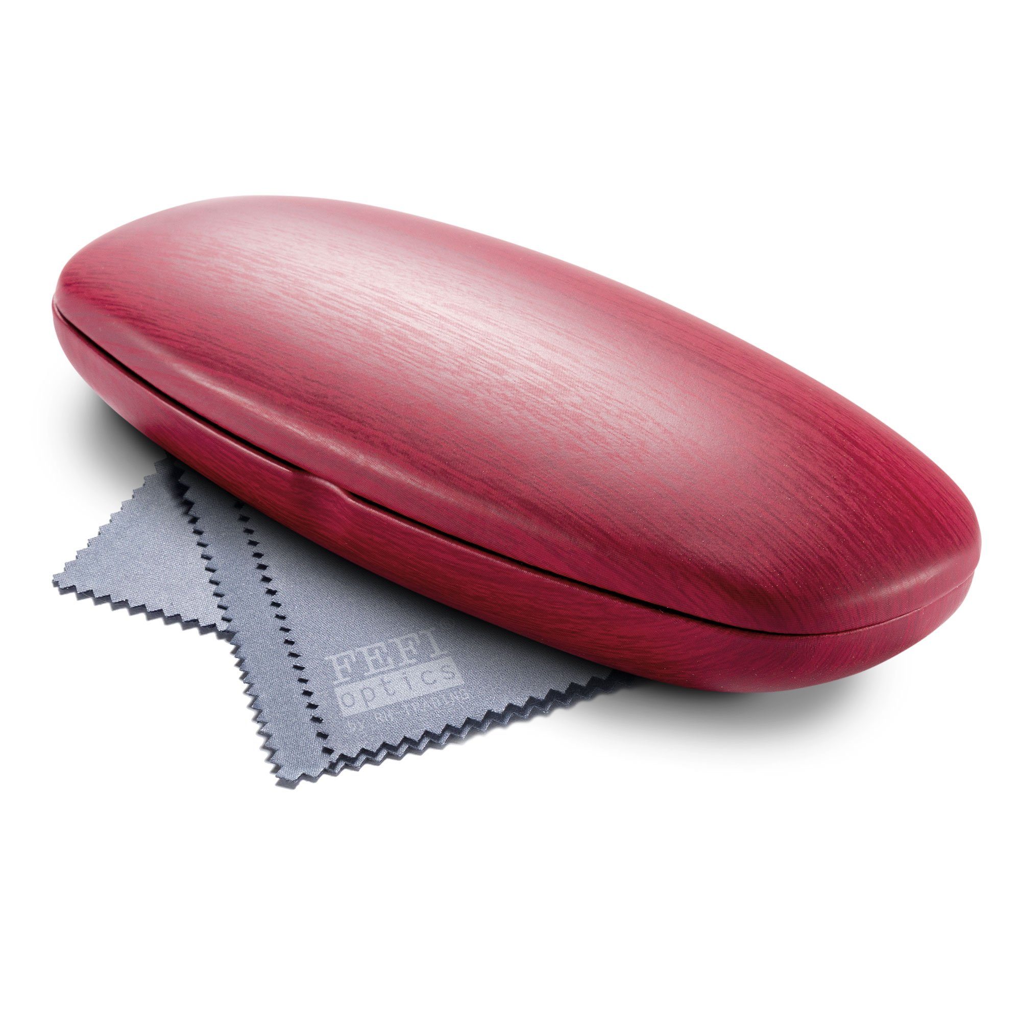 Das original FEFI Brillenetui in edler Holz-Optik mit hochwertigem Brillenputztuch - Neu in unserer Collection. Sicheren Schutz für Ihre Brille garantiert dieses schöne Hardcover Etui, und dazu sieht es noch super aus! Stabiles Metall mit einem täuschend echten Bezug in Holzoptik. Mit seinen ansprechenden Farben wird Sie dieses Etui begeistern! Der kräftige Schnappverschluß hält es sicher geschlossen und das Metallscharnier garantiert, dass Sie lange Freude an diesem tollen Etui haben. Innen sorgt ein weicher, farblich passender Samtbezug dafür, dass Ihre Brille geschützt ist. Im Set mitgeliefert, wird ein hochwertiges Mikrofasertuch in Optikerqualität, das sich wohlwollend von oft hauchdünnen, billigen anderen Tüchern unterscheidet. Das gelieferte Bundle besteht aus: 1 Etui + 1 Mikrofasertuch