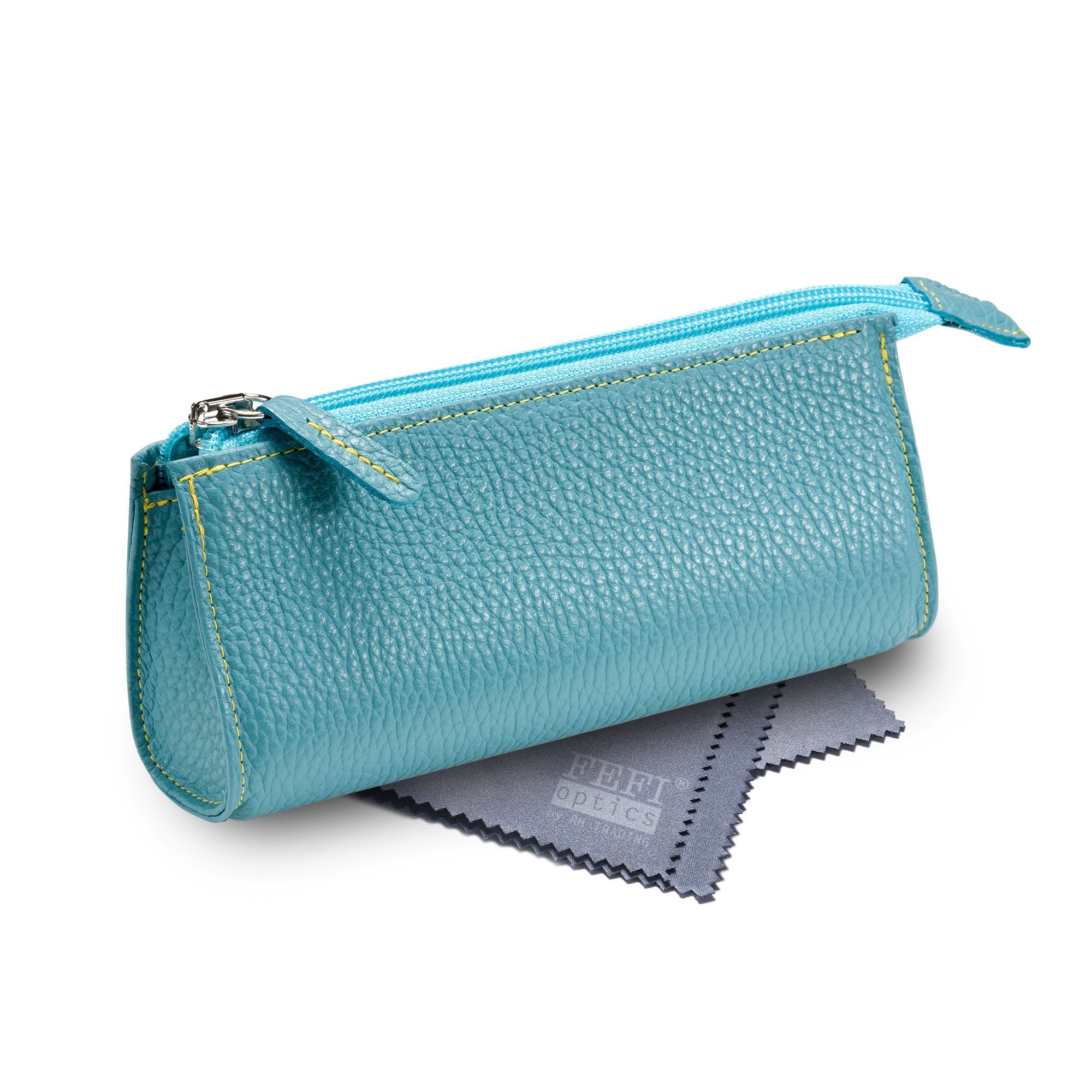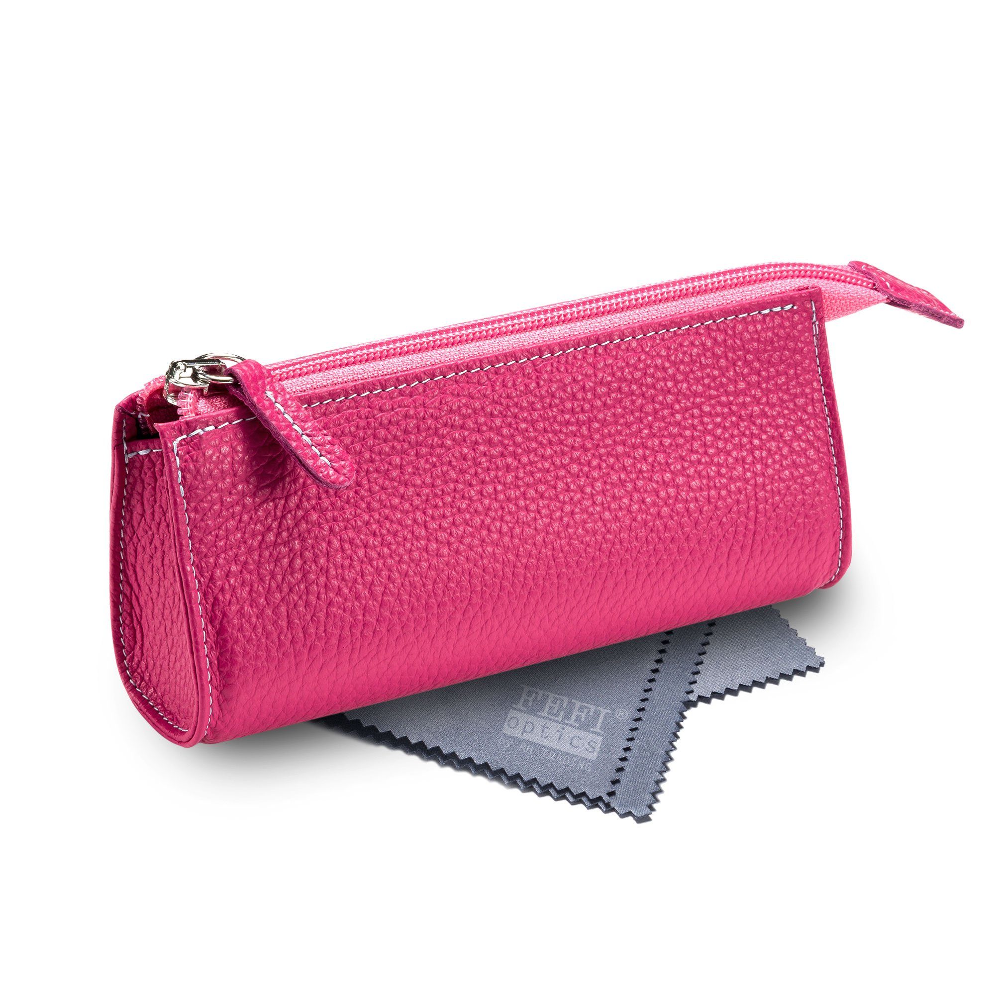 Sicheren Schutz für Ihre Brille garantiert dieses stylische Leder Etui. Und dazu sieht es noch extrem schick aus mit dem praktischen Reissverschluss. Ein zuverlässiges Etui für alle Fälle, mit dem gewisse Etwas. Die hochwertige Verarbeitung und die ansprechenden Farben werden Sie begeistern! Die hochwertige Verarbeitung Made in Germany garantiert, dass Sie lange Freude an diesem tollen Etui haben. Innen sorgt ein schwarzer, weicher Samtbezug dafür, dass Ihre Brille geschützt ist. Im Set mitgeliefert, wird ein Mikrofasertuch in Optikerqualität, das sich wohlwollend von oft hauchdünnen, billigen anderen Tüchern unterscheidet.
