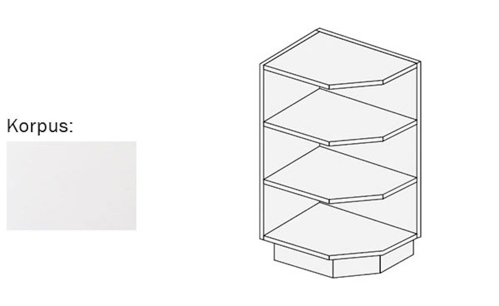 Der Schrank ist mit farbig passender Sockelleiste (Korpusfarbe) und regulierbaren Füßen ausgestattet.
