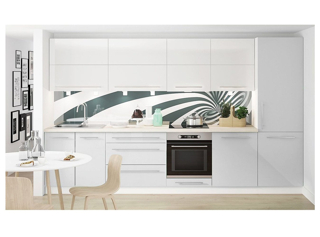 (Abb. beispielhaft / ohne Dekoration und ohne Spüle, Arbeitsplatte, Armatur, Beleuchtung und Elektrogeräte)