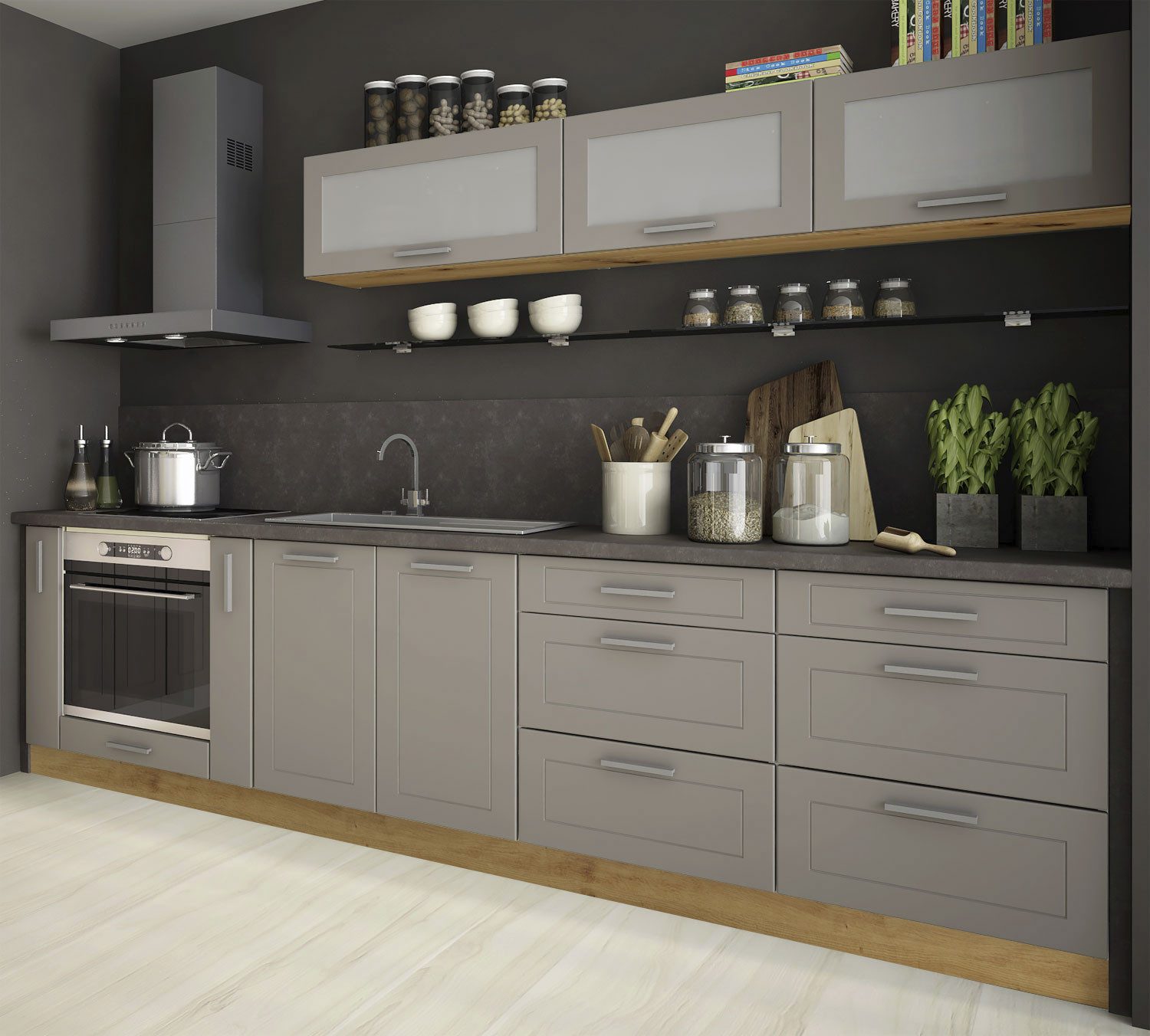 Schaffen Sie sich ein behagliches Küchenambiente mit dieser modernen Küchenzeile der Serie Kvantum.