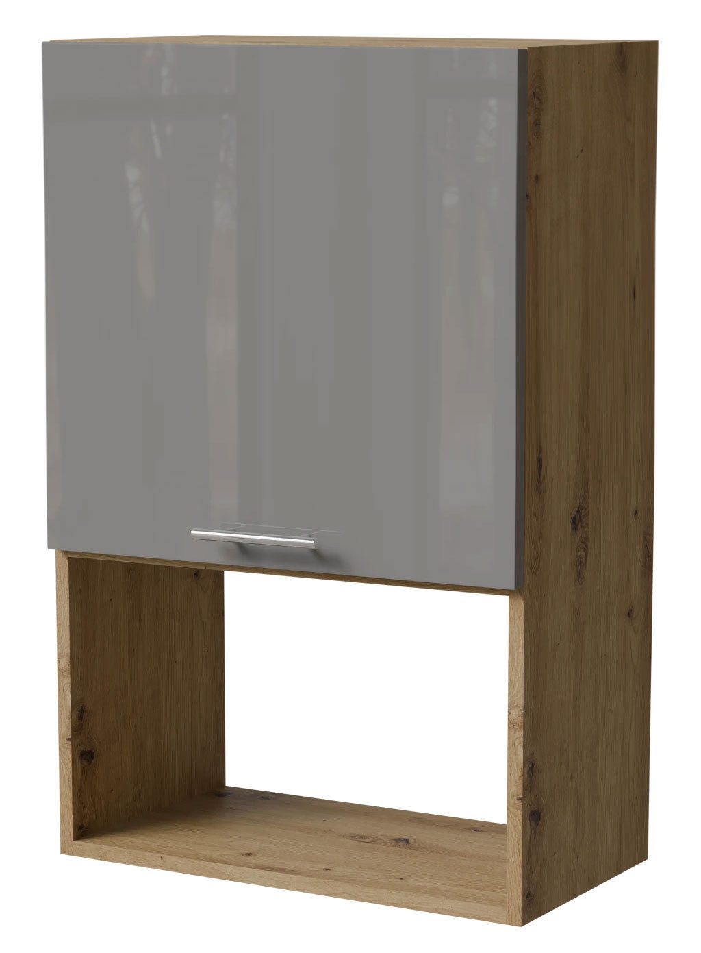 - Korpus Eiche Artisan matt / Front grau Hochglanz