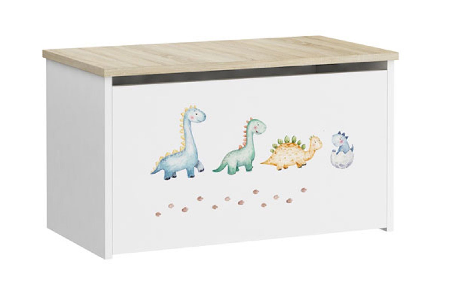 Eine moderne und funktionelle Spielzeugtruhe mit niedlichen Motiven.