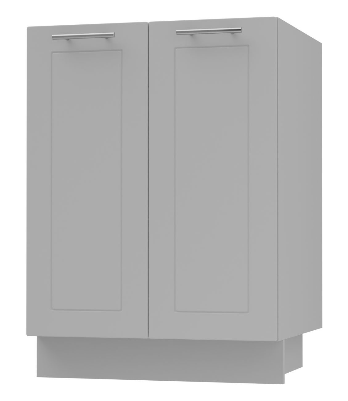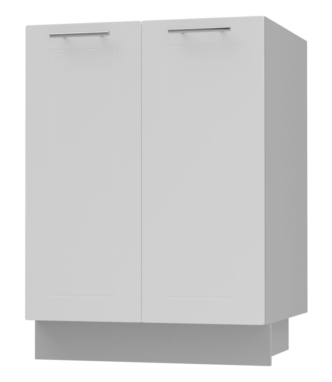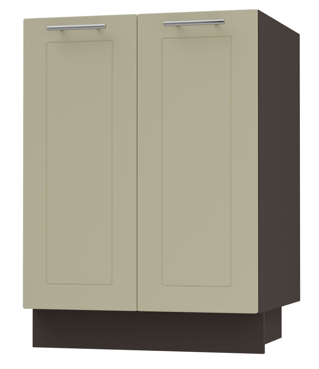 Der Schrank ist mit farbig passender Sockelleiste (Korpusfarbe) und regulierbaren Füßen ausgestattet.
