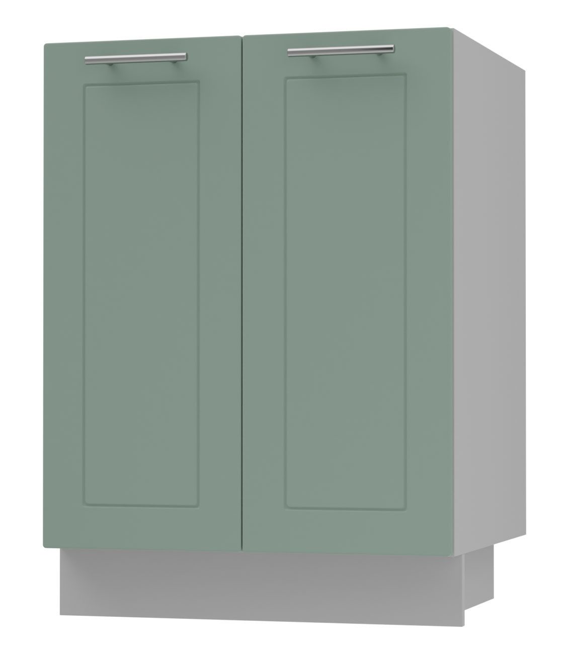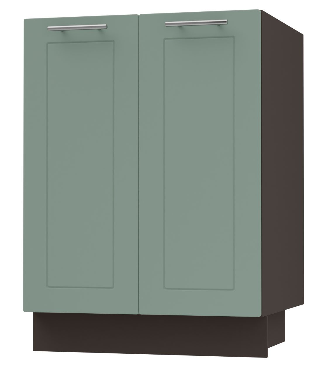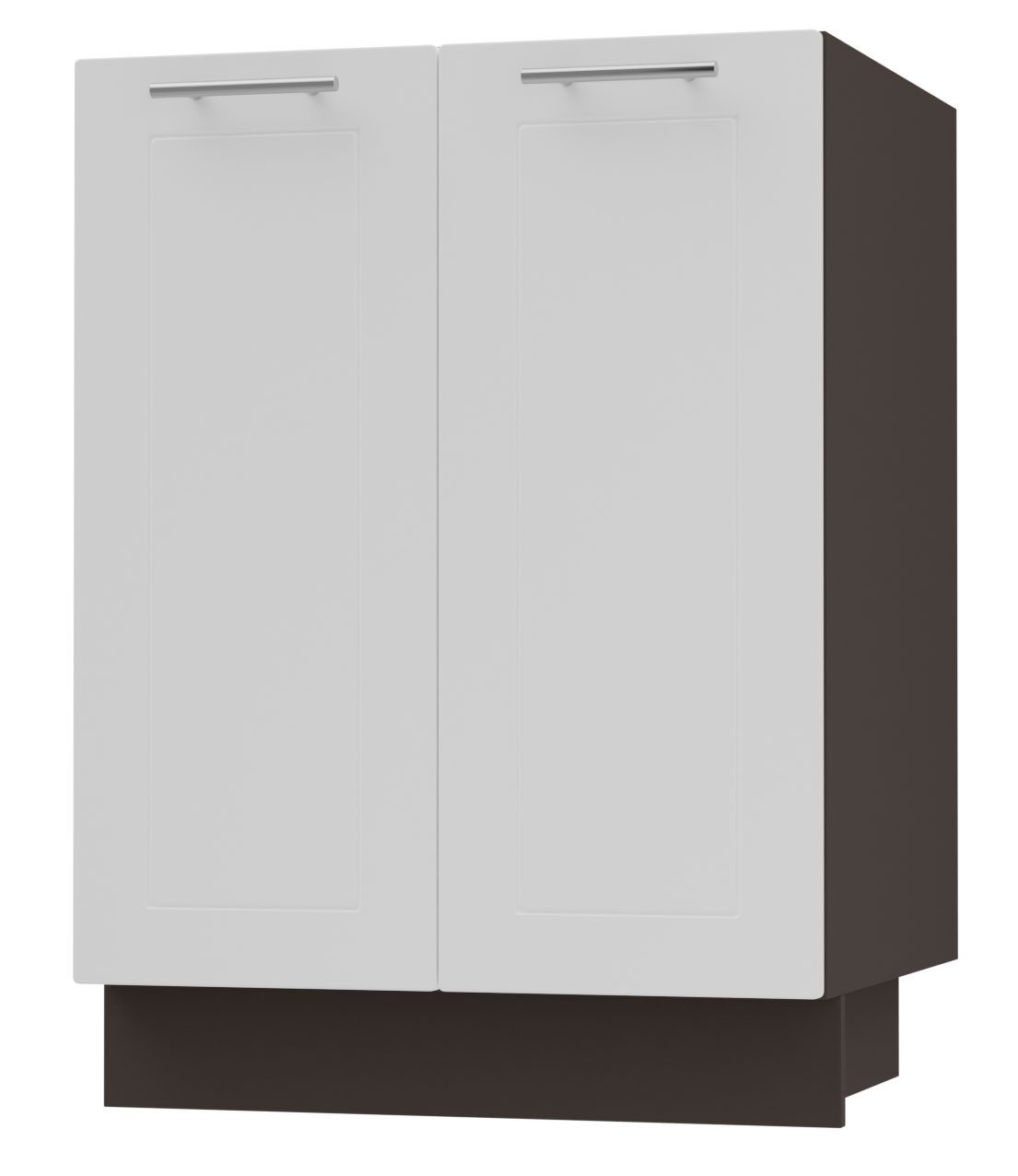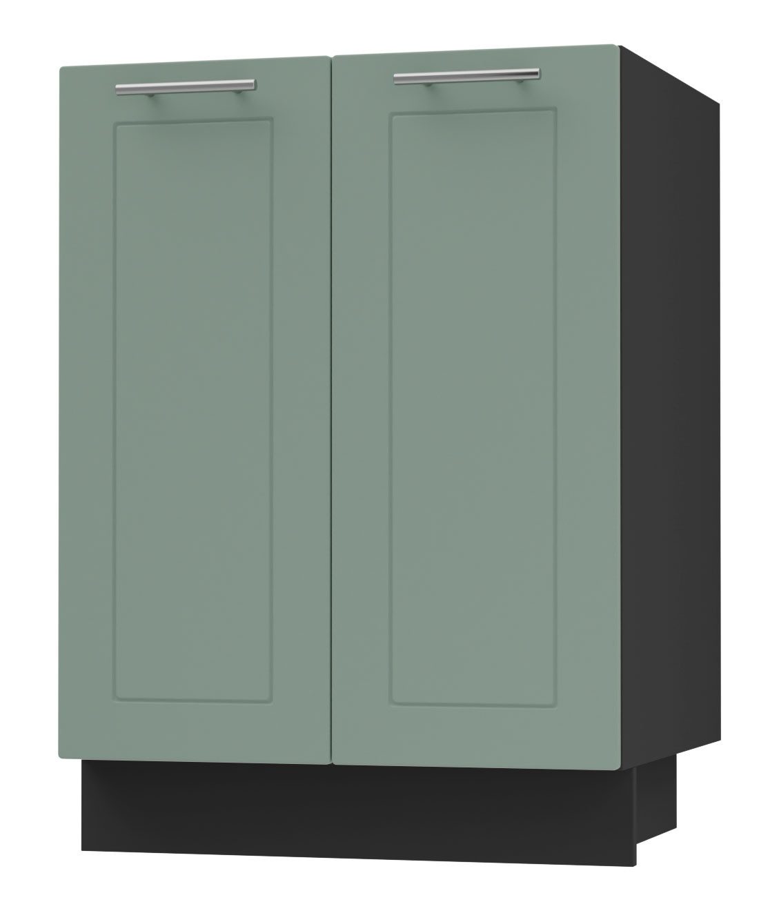 Der Schrank ist mit farbig passender Sockelleiste (Korpusfarbe) und regulierbaren Füßen ausgestattet.