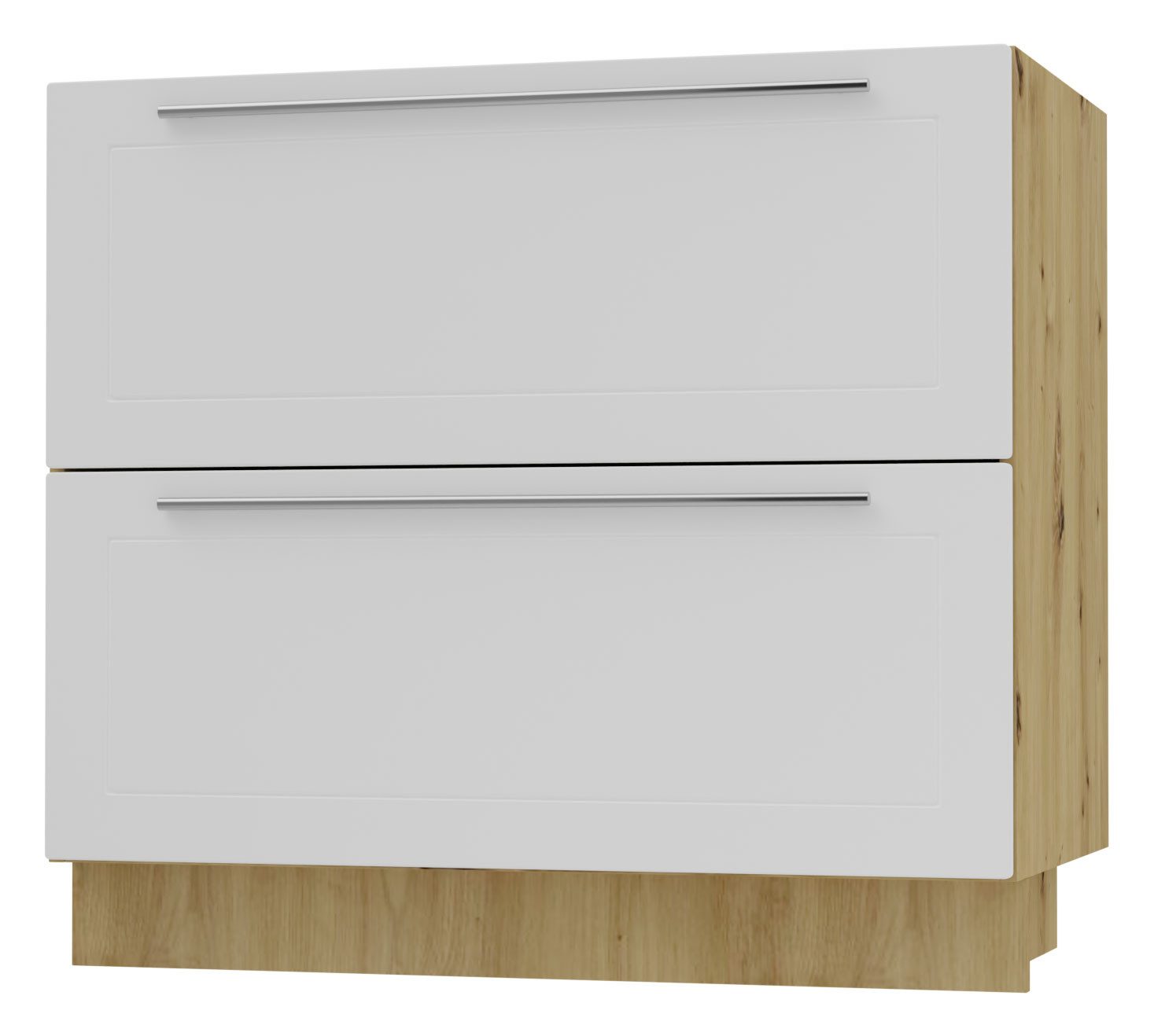 - Korpus eiche artisan matt / Front weiß matt