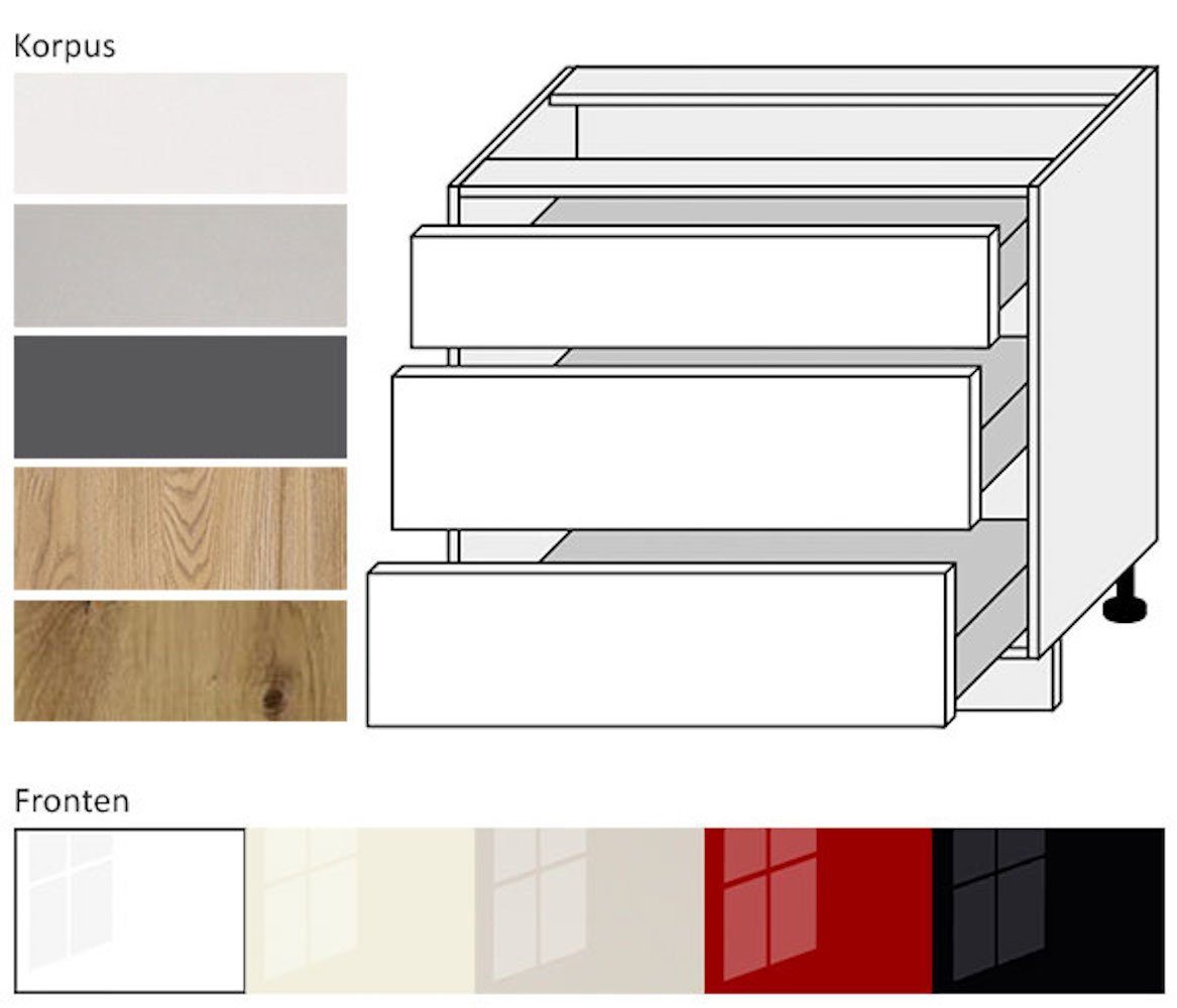 Der Unterschrank ist in folgenden Farbausführungen erhältlich: