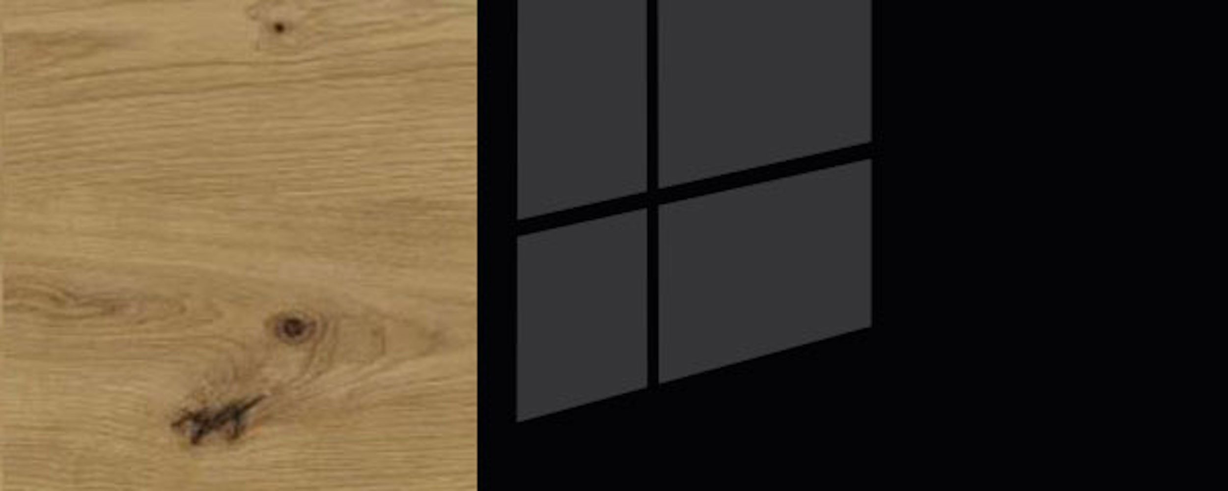 - Korpus eiche artisan matt / Front schwarz Hochglanz