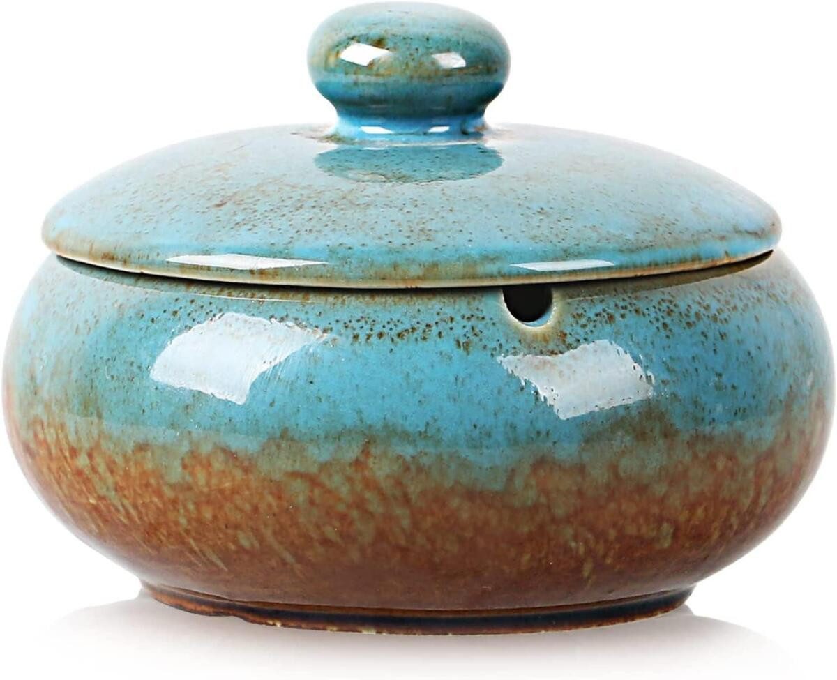 Stilvolles Design und Größere Kapazität – Der dekorative Aschenbecher besteht aus 100% gesprenkelter Glasur-Keramik, die rostfrei und korrosionsbeständig mit hoher Qualität ist. Es sieht nicht nur aus wie ein Aschenbecher, sondern auch ein Stück hübsche Töpferei als Dekoration auf dem Beistelltisch. Im Vergleich zu anderen Zigarren-Aschenbechern sind RONXS Keramik Aschenbecher in größerer Größe, um 3 Pakete Zigarettenstummel zu verstecken.Winddichte Aschenbecher Abdeckung – Sie müssen sich keine Sorgen mehr über den regnerischen Tag machen, der Aschenbecher wird mit einem Deckel geliefert, um den Regen fernzuhalten und die Asche davon abzuwehen, wo auch unansehnliche Hintern gut verbergen und den Geruch aus der Luft fernhalten kann. Bietet Ihnen und Ihren Gästen das angenehmste Raucherlebnis.Rutschfeste Unterseite – Das rutschfeste Boden-Design unseres großen Aschenbechers schützt Ihre Tischplatte vor Kratzern und schützt sie vor Wind; jeder Aschenbecher für Männer und Frauen verfügt über drei Zigarrenhalter und ein tiefes Waschbecken, um mit Freunden, Familie, Kunden oder Kollegen zu teilen und Ihren Tisch komplett sauber zu halten.Sichere Mittelsäule - Die Zigarettenaschenbecher im Freien haben eine zentrale Säule für Zigaretten, und die Zigarettenkippen können gelöscht werden, bevor sie in den Aschenbecher gegeben werden, der hygienischer und sicherer ist.