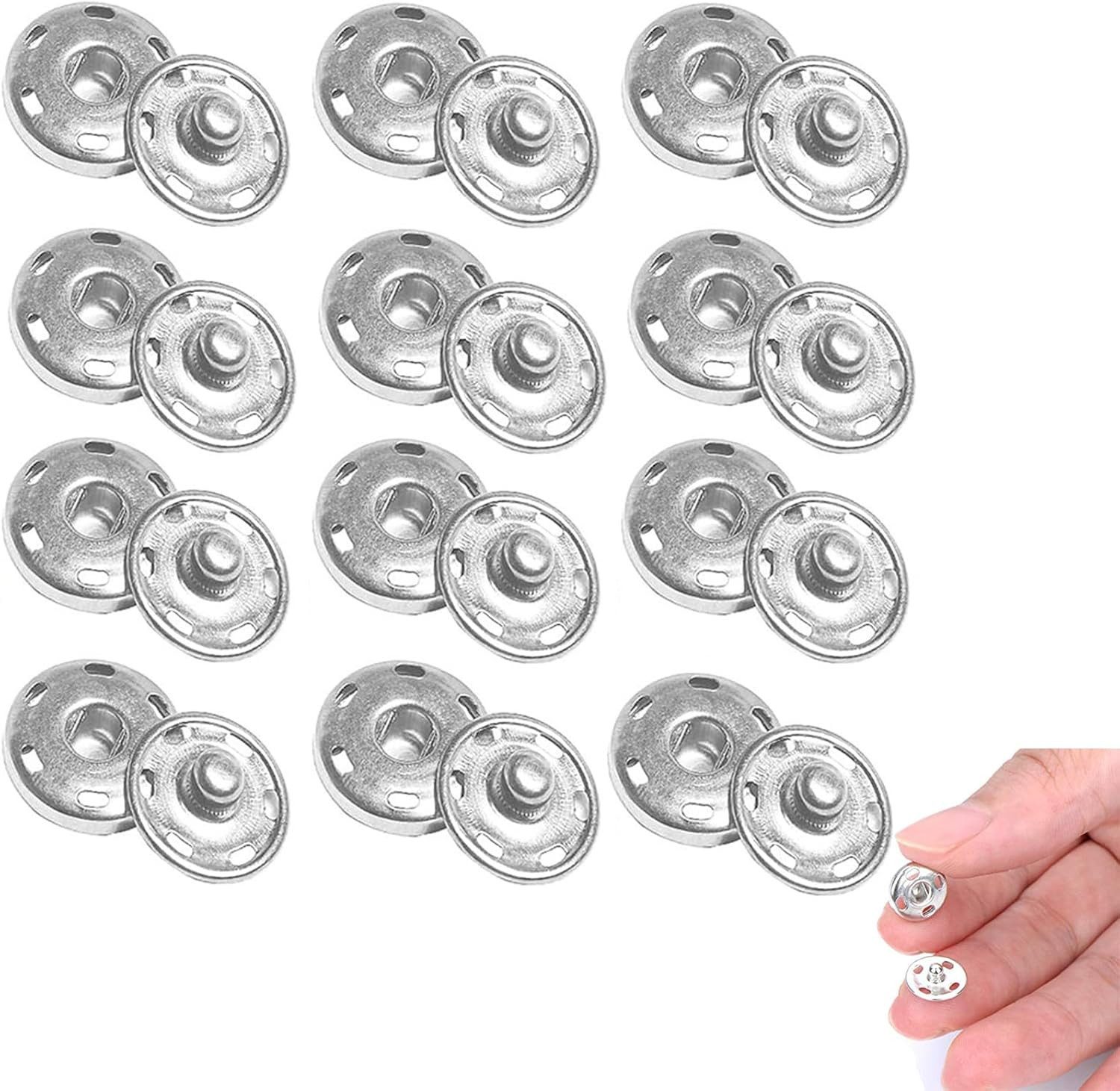 12 Sätze Annähen Druckknöpfe aus Metall, 21mm Snaps, Druckknopf Nähen, für Kleidern, Blusen, Handwerk, DIY, Handtasche