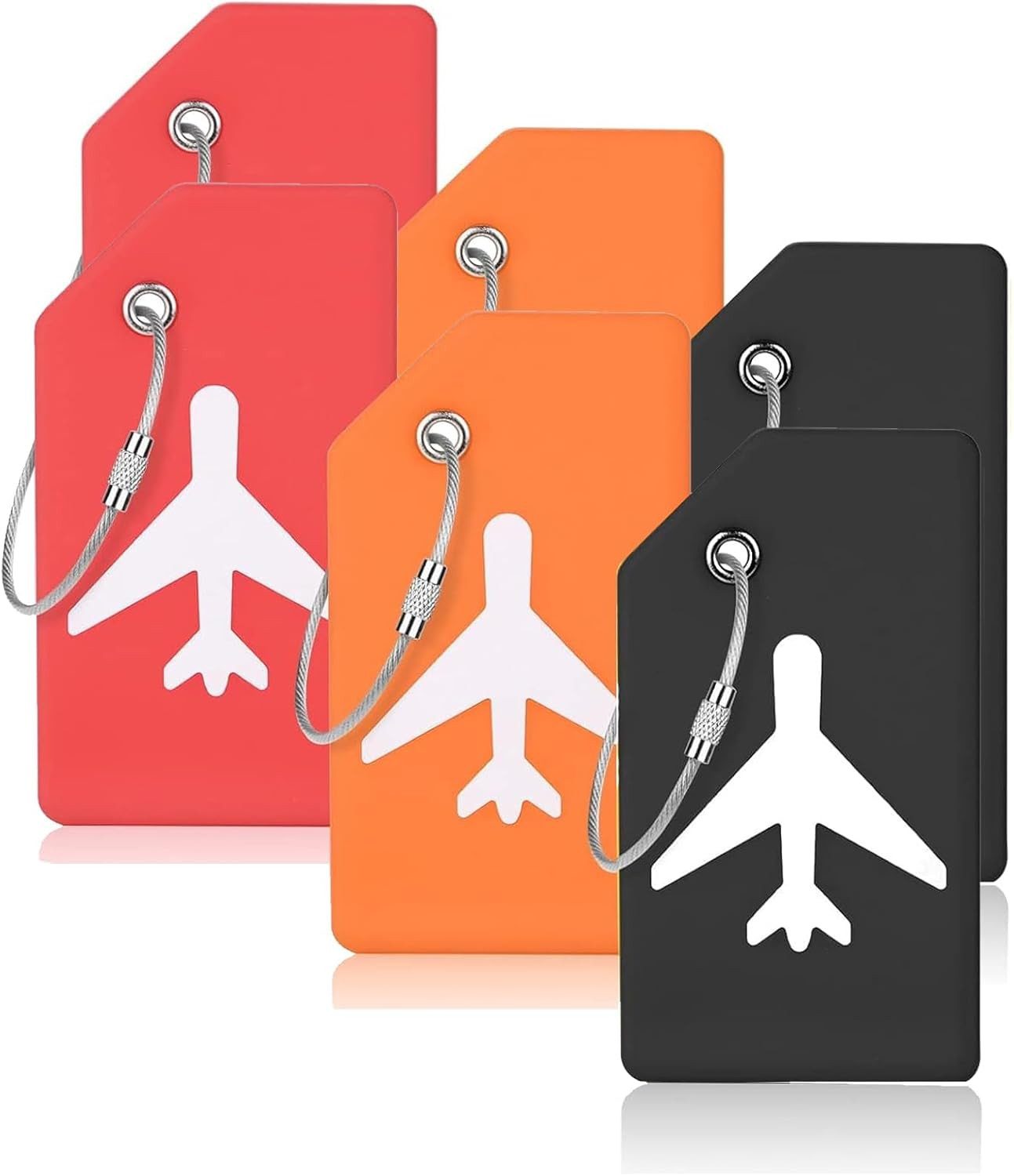 Stilvolle Reiseaccessoires: Elegante Kofferanhänger mit Flugzeug-Motiv in 3 Farben (Schwarz, Orange, Rot) – Maße: 7,5x4,5 cm.