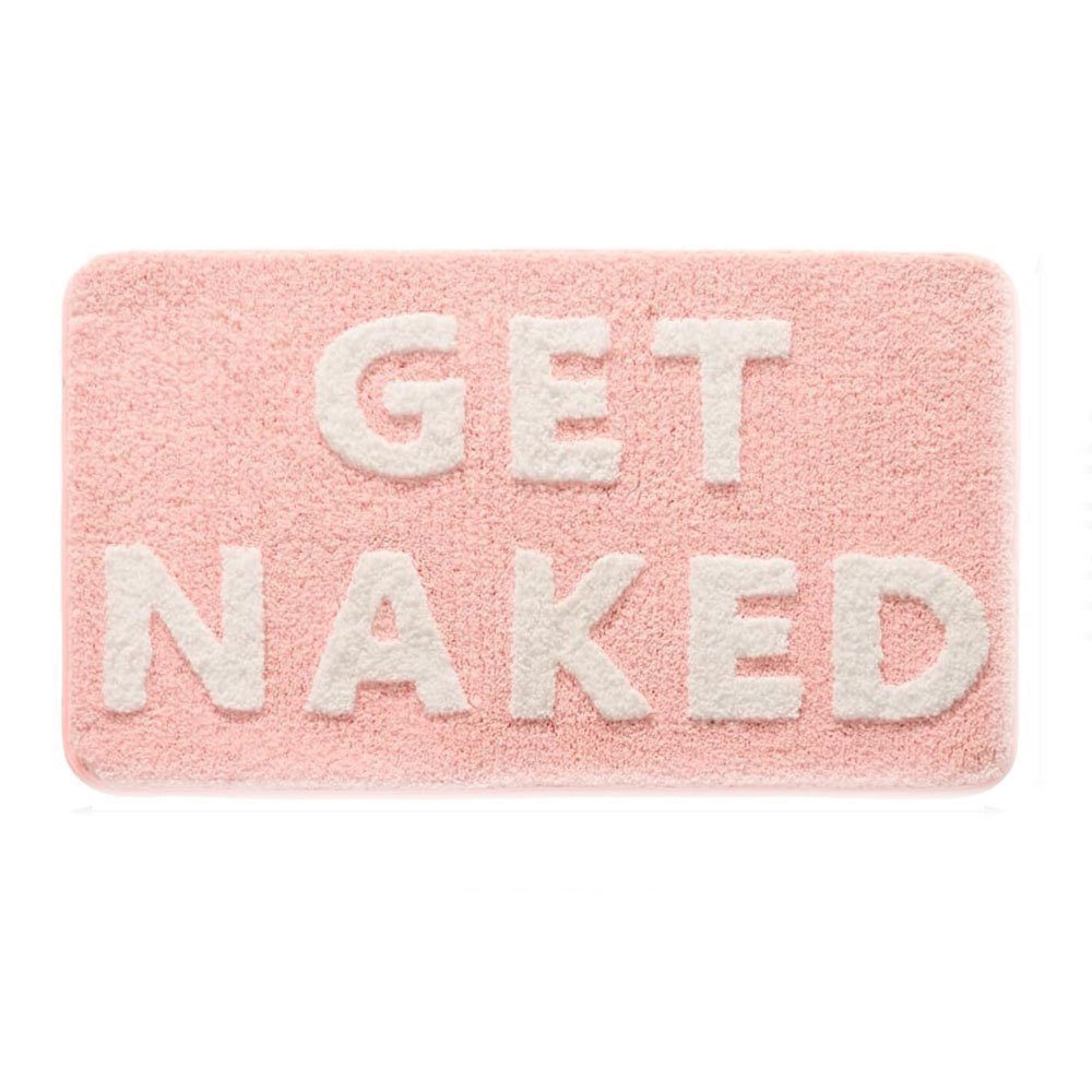Interessantes Design und 3D-Effekt: Der rosa Plüsch sieht in Kombination mit weißen Buchstaben sehr bequem aus, wodurch diese beige Badezimmermatte mit einzigartigem Beflockungsprozess süß und verspielt aussieht.