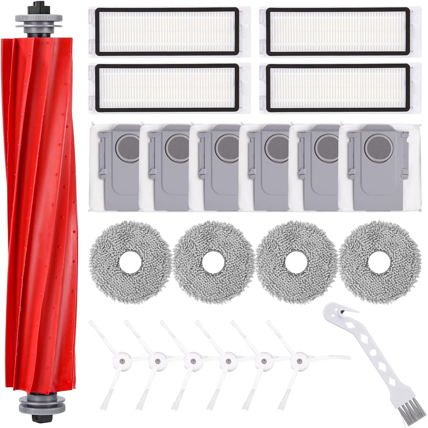 [Produkt umfasst]-Unser Produkt umfasst 1-Hauptbürste, 4-Filter, 6-Staubbeutel, 4-Tücher, 6-Seitenbürsten und eine kleine Bürste.