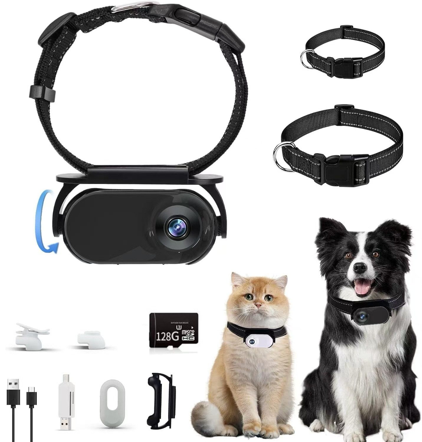 Comes with memory card: cat camera collar comes with a 128GB TF card for video recording and photos. Can record approximately 120-180 videos of 5 minutes in length. After every 5 minute recording, the cat camera will automatically record in an endless loop, so you don't have to worry about the recording being interrupted. Can easily record your pet's activities.