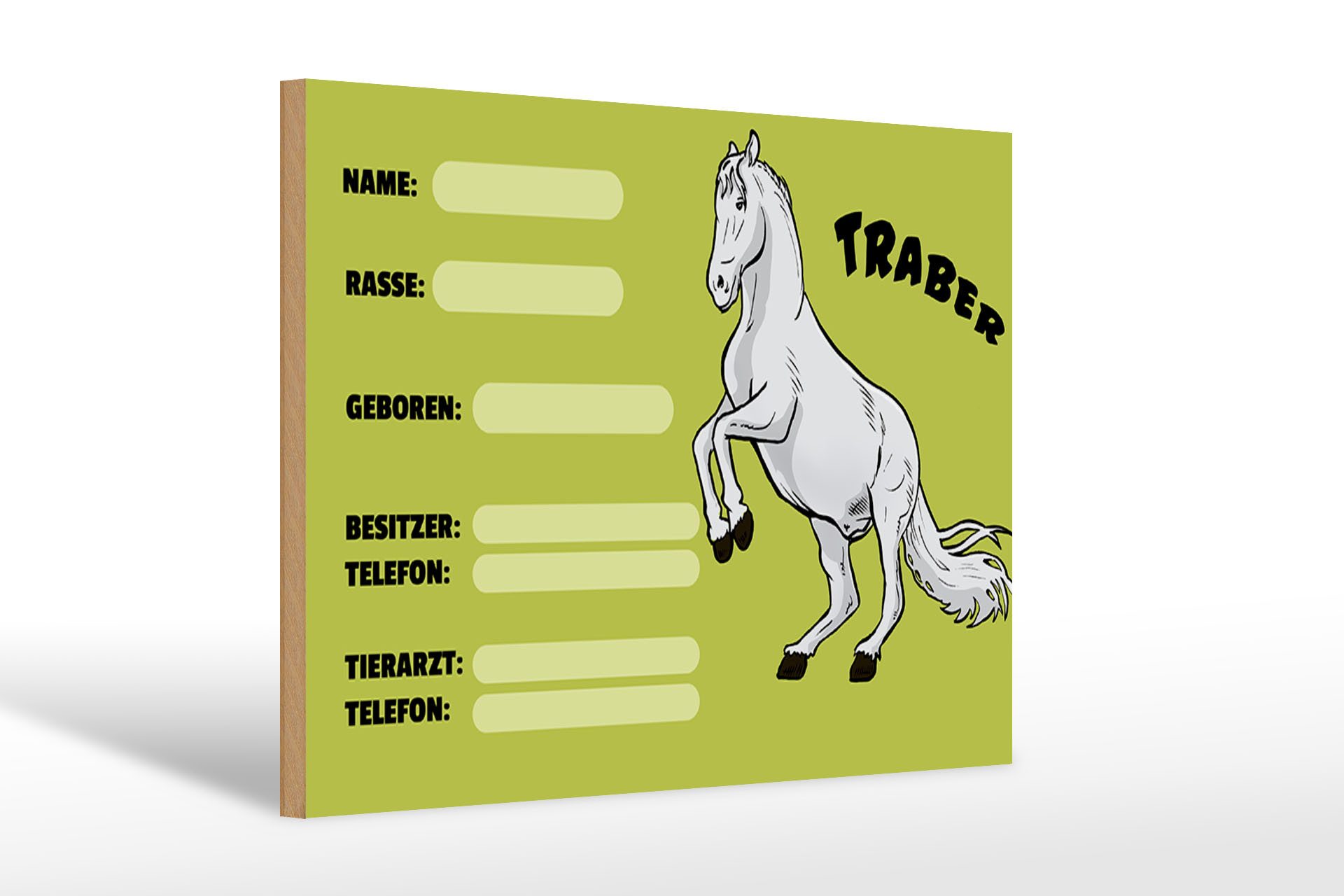 Femer GmbH Holzbild Pferd 30x20cm Traber Angaben Name Besitzer, (1 St), Glatte Holzfaserplatte (MDF), vorn beschichtet