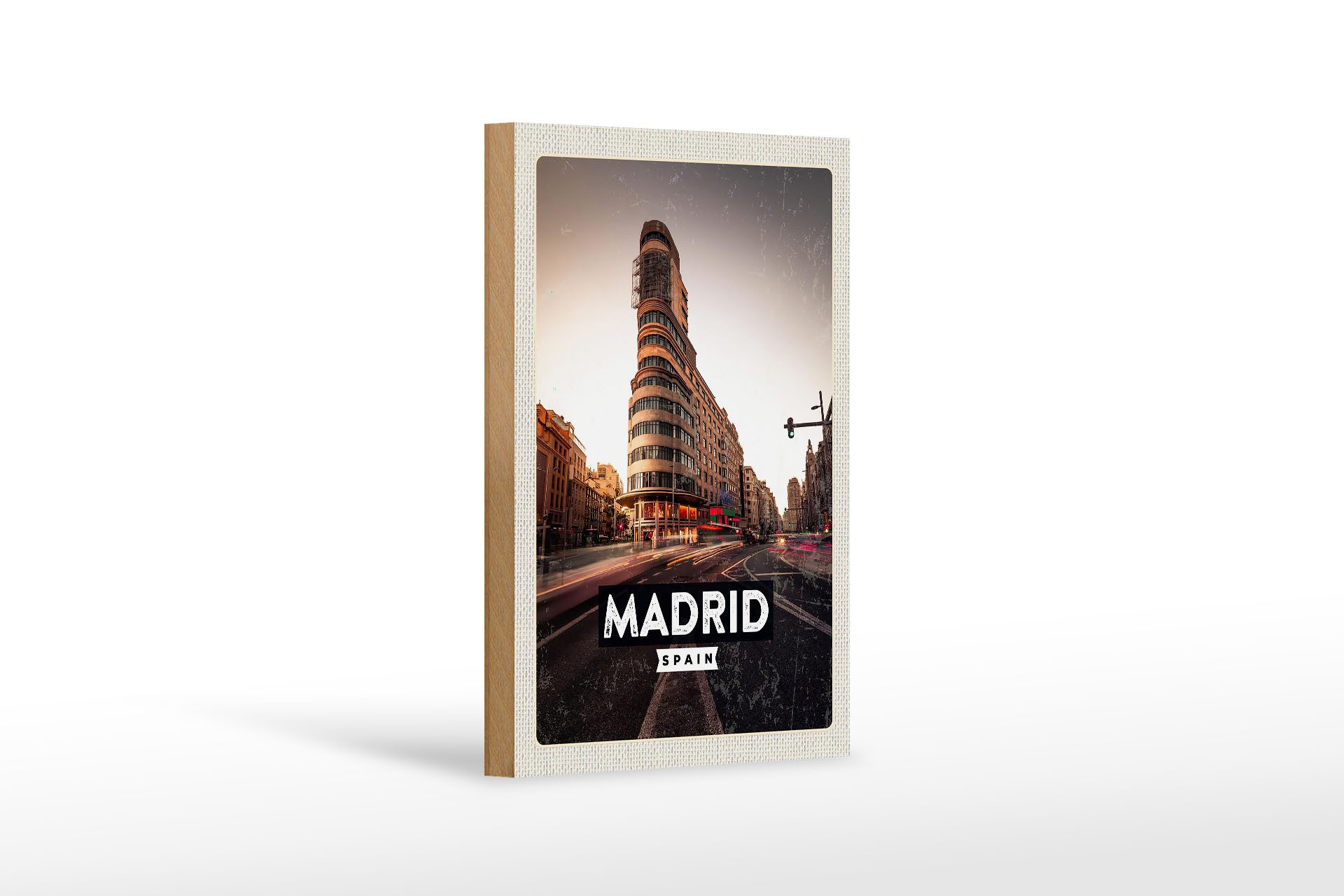 Holzbild Reise 12x18 cm Madrid Die Calle Gran Vía Shopping