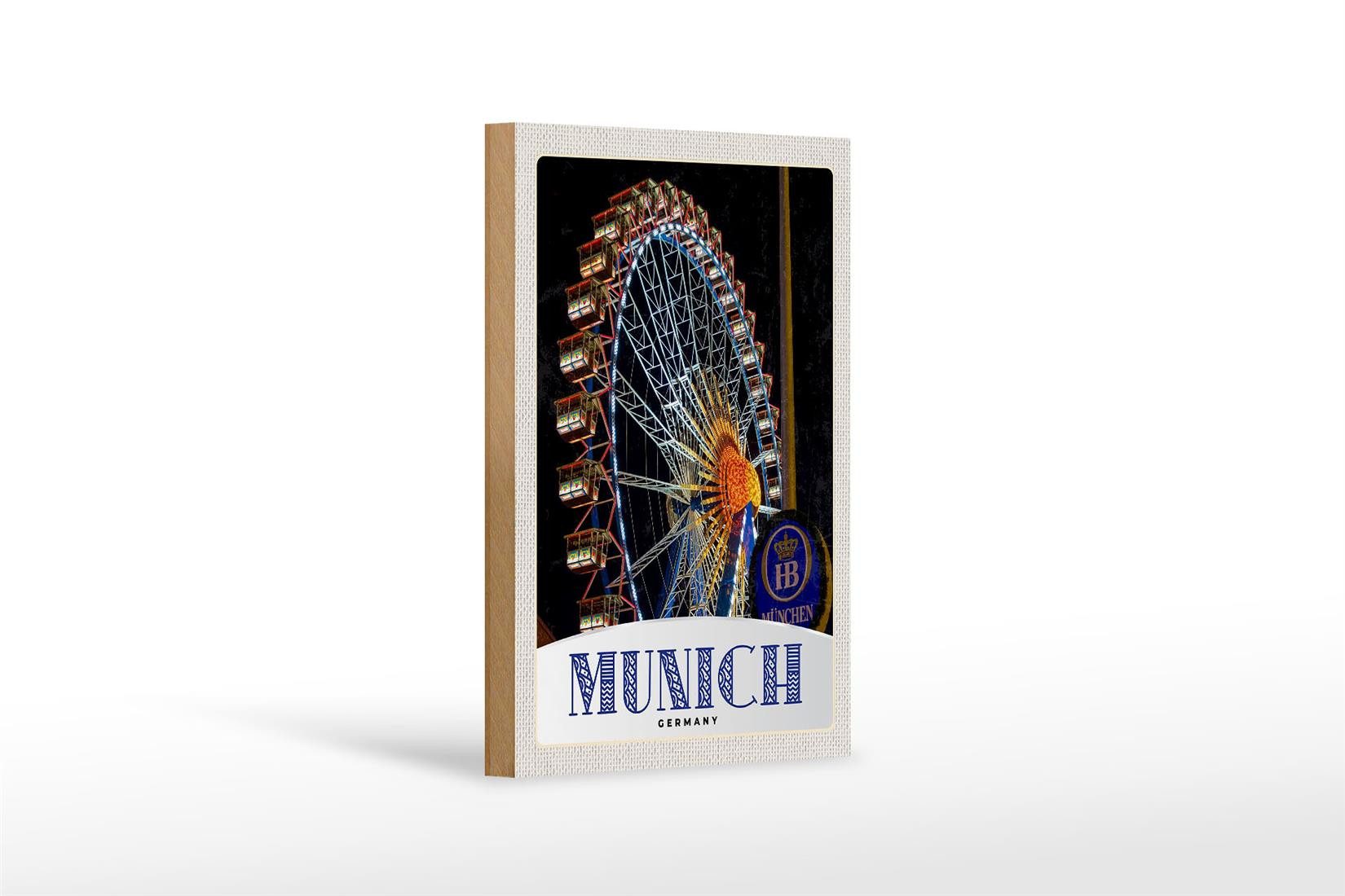 Femer GmbH Holzbild Reise 12x18 cm München Oktoberfest Riesenrad Kirmes, (1 St), Glatte Holzfaserplatte (MDF), vorn beschichtet